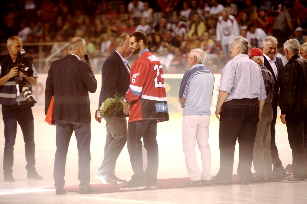 V piatok sa s Handzušom lúčil vypredaný banskobystrický zimný štadión. Diváci mu aplaudovali skandovaným potleskom v stoji. Držiteľ Stanley cup-u, majster sveta i majster republiky iba ťažko hľadal slová: