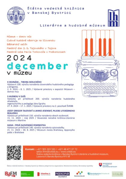 Pre rezerváciu termínu kontaktujte: 048/471 07 44, hudobneatrium@svkbb.eu. Vstupné 2 €. Potrvá do 31. decembra 2024