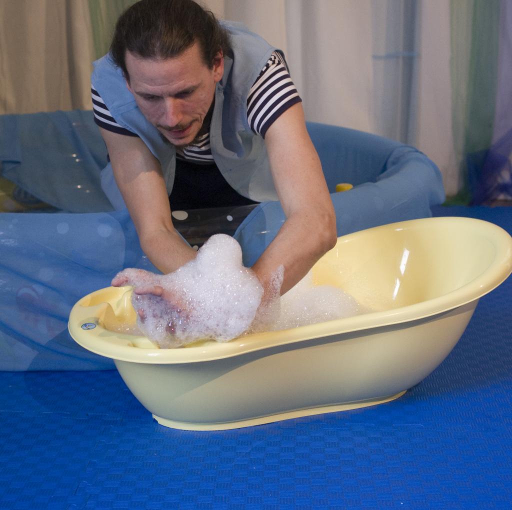 Režisérka Monika Kováčová sa v pokračovaní projektu Batolárium nechala inšpirovať vodou: ,,Voda ponúka široké možnosti farieb, skupenstiev, teplôt, priestorov. Zároveň sa s týmto živlom deti stretávajú každý deň cez kúpanie, slzy, rozlievanie tekutín po stole, neskôr aj neuveriteľne príťažlivé mláky. Bola s nimi už od začiatku pri plodovej vode. Voda špliecha, leje sa, čistí, preteká pomedzi prsty, rozmáča, padá, vlní sa, pení, chladí, sneží…, ale hlavne deti fascinuje a neskutočne baví. Inscenácia ponúkne plavbu vaňoloďou cez kvapky, cez mláky, cez mokré stupaje do sveta plného lavórov, štipcov, hubiek, kefiek, bábok z detského oblečenia. Premieňa Teátrium na kúpeľňové ihrisko.“