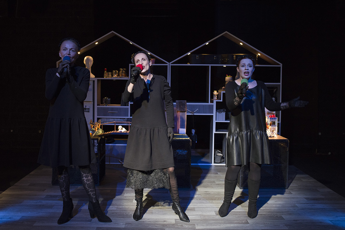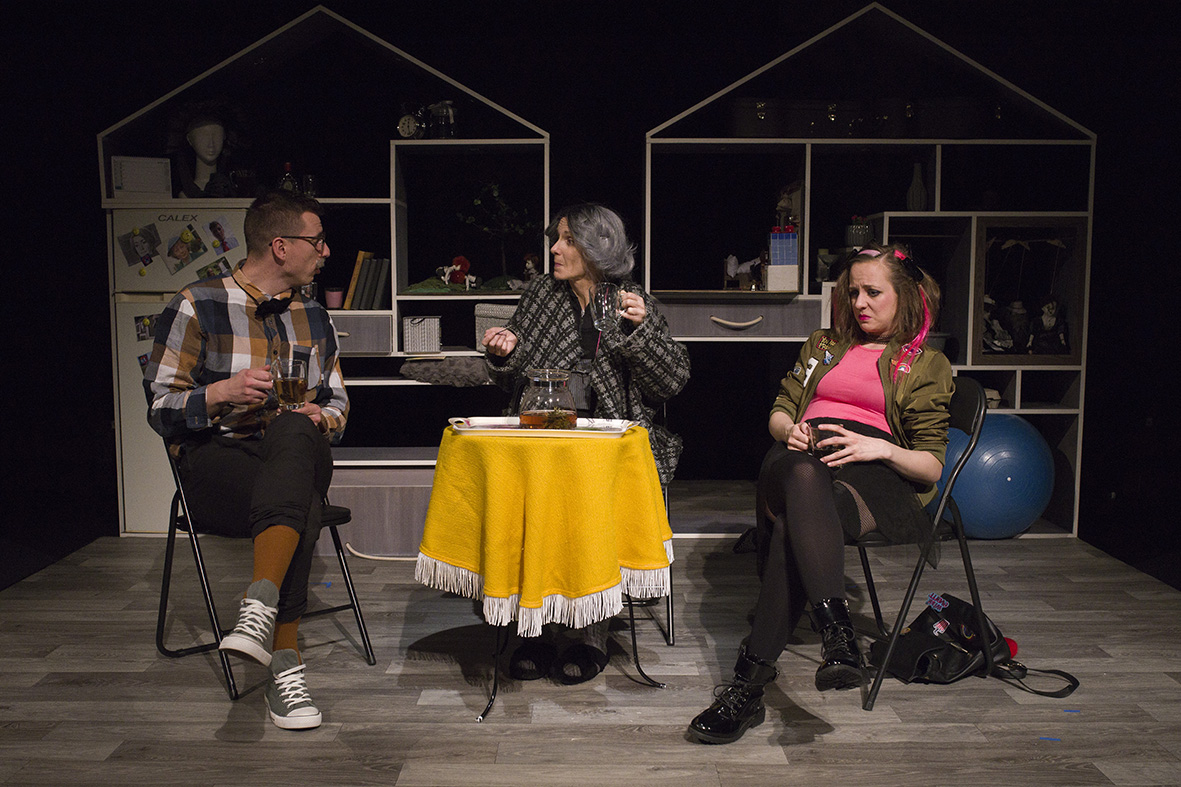 V predstavení hrajú: Ivana Kováčová, Marianna Mackurová, Mária Šamajová, Alena Sušilová, Filip Štrba a Anna Zemaníková.