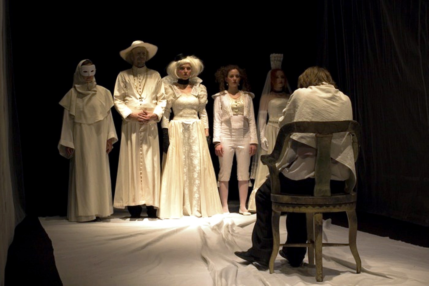 Dráma úradníka Popriščina je tradične inscenovaná ako monodráma. Marián Pecko predlohu spracoval ako farebnú psiu operu, vizuálne a hudobne pôsobivú, so speváckymi výstupmi, nechýbajú však ani bábky. Za necelý rok inscenácia účinkovala nielen doma, ale aj na zahraničných divadelných festivaloch a bola priaznivo ocenená laickou verejnosťou aj divadelnou kritikou.