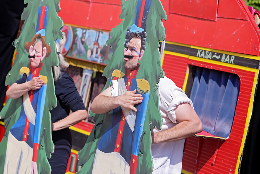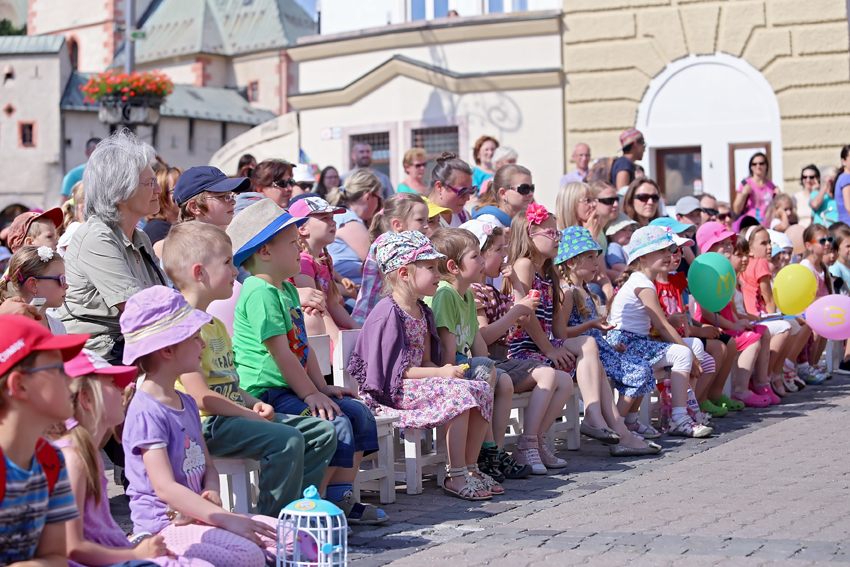 Celý tvorivý tím, ktorý formuje toto skvelé divadlo , ponúkol divákom a diváčkam špeciálne prvojúlové prekvapenie. Deti i dospeláci si posadali na pripravené lavice, mnohí aj na stupne pod sochou Panny Márie. A zábava mohla začať.