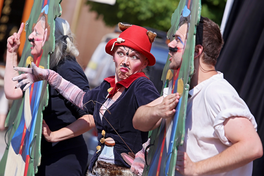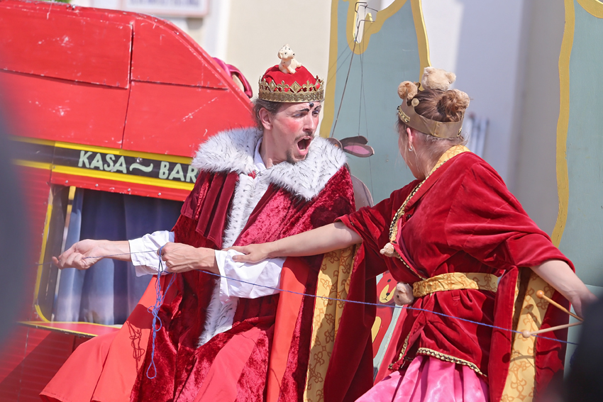 Obľúbená tradičná rozprávka v netradičnom spracovaní Kocúr v čižmách a divadelné poučenie o rôznych druhoch bábok (marionety, javajky, maňušky) či spôsoboch ich vodenia s názvom Minikurz animácie, vskutku zaujali. Súčasné tvárei Bábkového divadla na Rázcestí prišli priamo k svojim divákom a svoje umenie rozbalili pod holým nebom, čomu prialo aj teplé slnečné počasie.