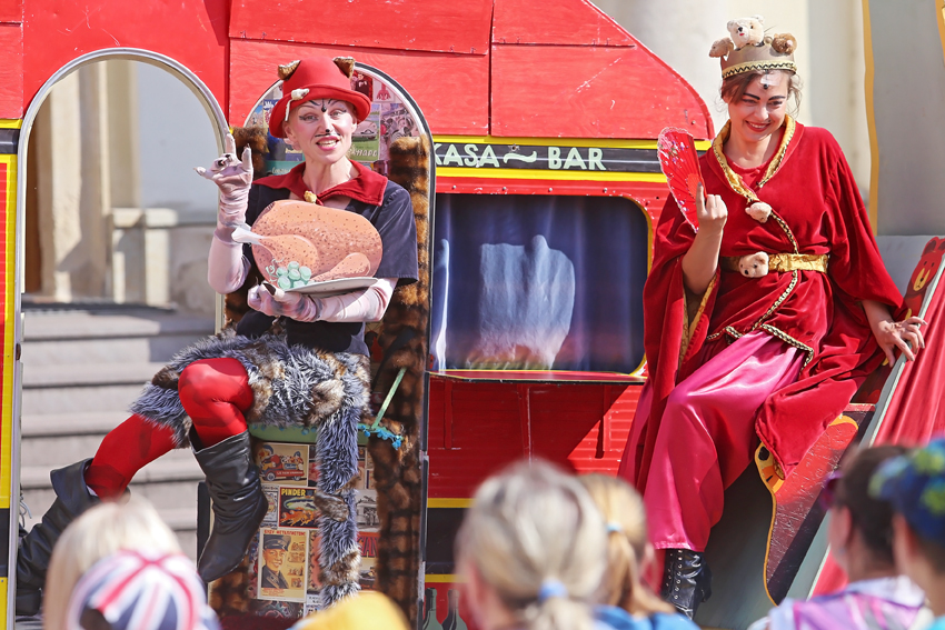 Banskobystrické Bábkové divadlo na Rázcestí (BDnR) si na svoje 55. narodeniny pripravilo v stredu 1.júla pre svojich priaznivcov osviežujúce predstavenie priamo na Námestí SNP. Figliarsky Kocúr v čižmách pobavil malých aj veľkých divákov.