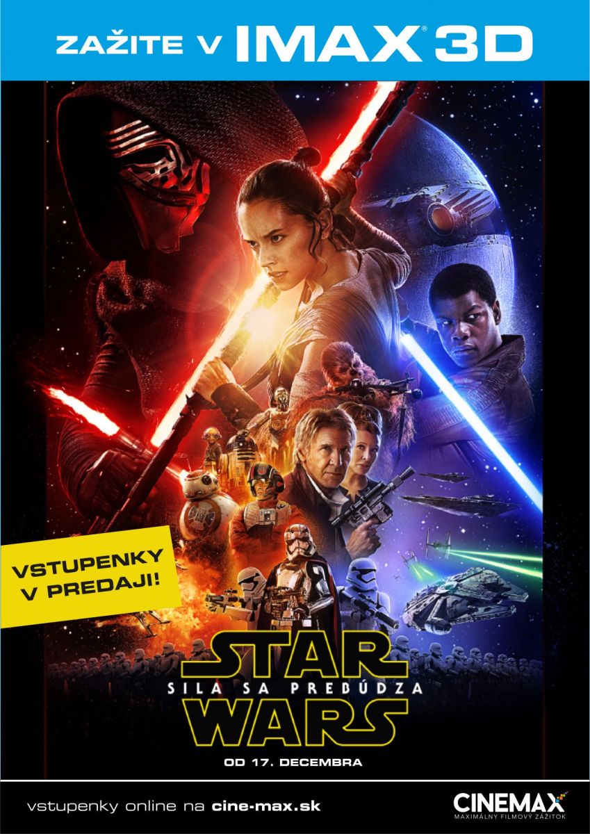 Milý filmový fanúšik, najočakávanejšia filmová udalosť tohto roka je tu Star Wars: Sila sa prebúdza. Kedysi dávno, v preďalekej galaxii, sa tridsať rokov po udalostiach v Návrate Jediho musí legendárna posádka Hana Sola, jeho žen Princeznej Lei a Žvejkala vysporiadať s novým nebezpečenstvom v podobe Sitha Inquisitora a nájsť dávno strateného Lukea Skywalkera. Vstupenky v predaji.