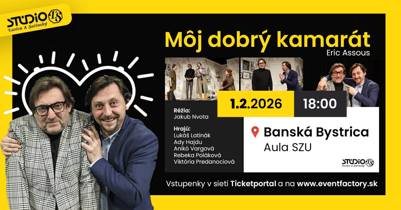 Vstupenky: https://www.ticketportal.sk/event/Moj-dobry-kamarat-Event-Factory