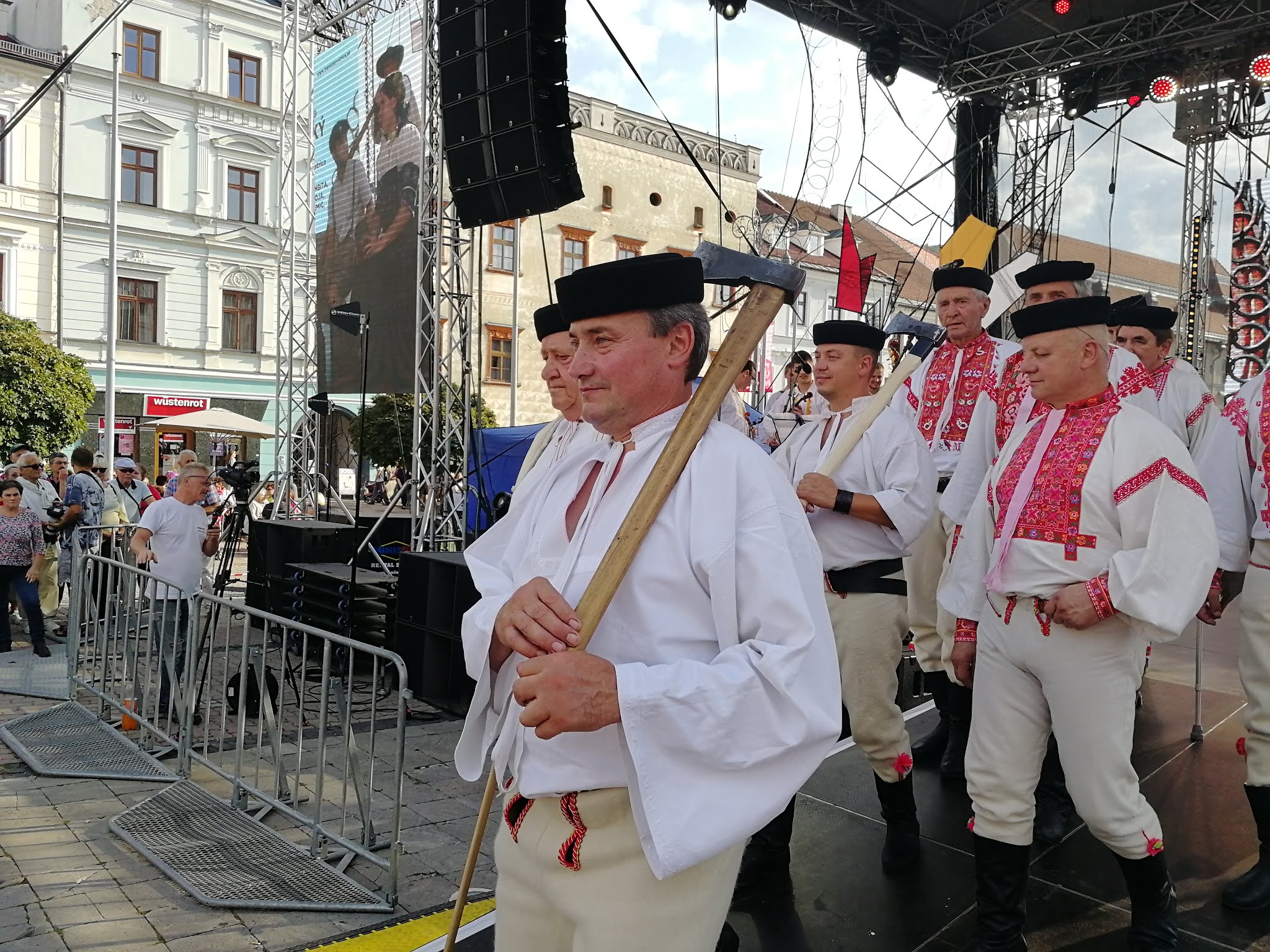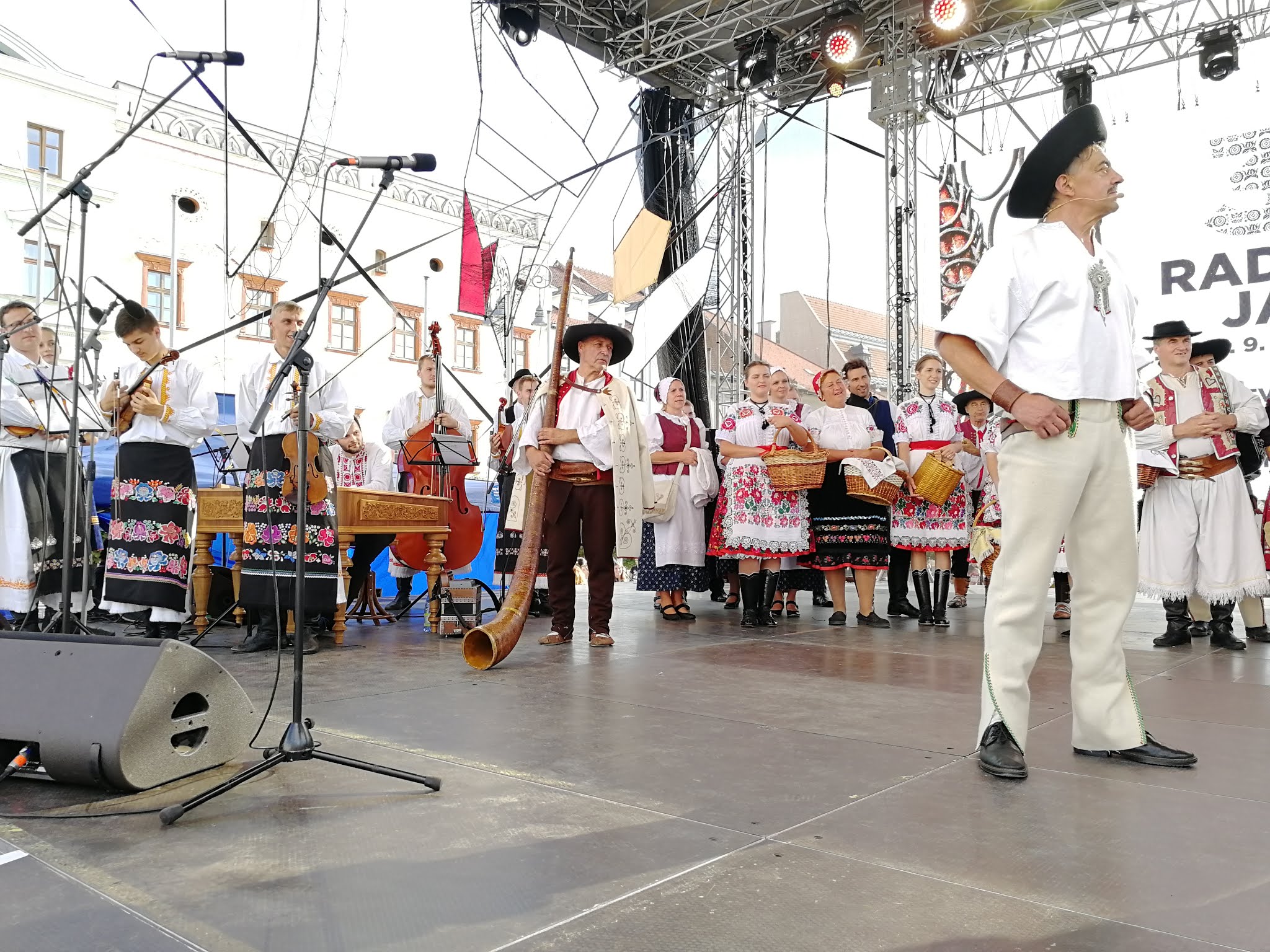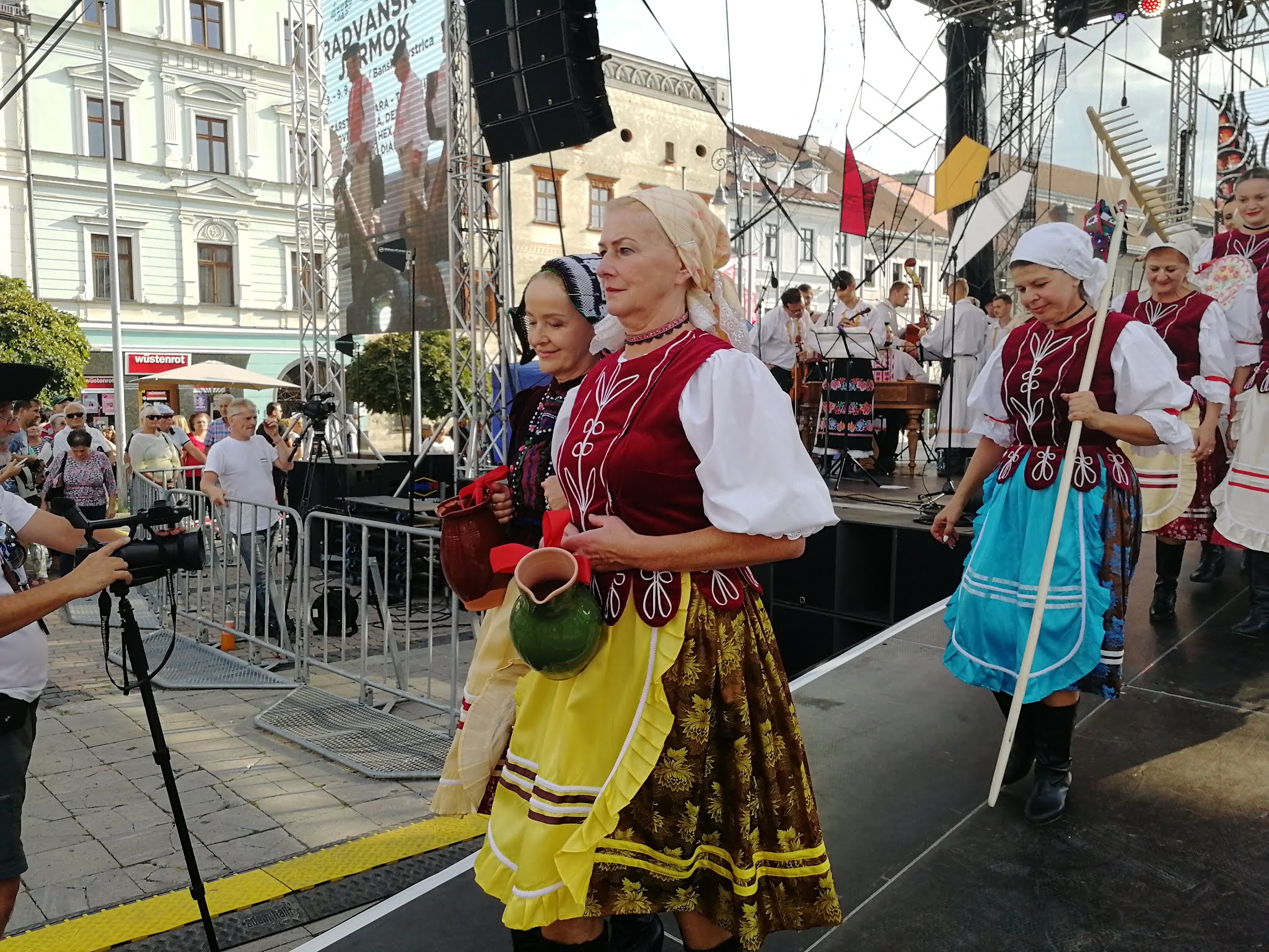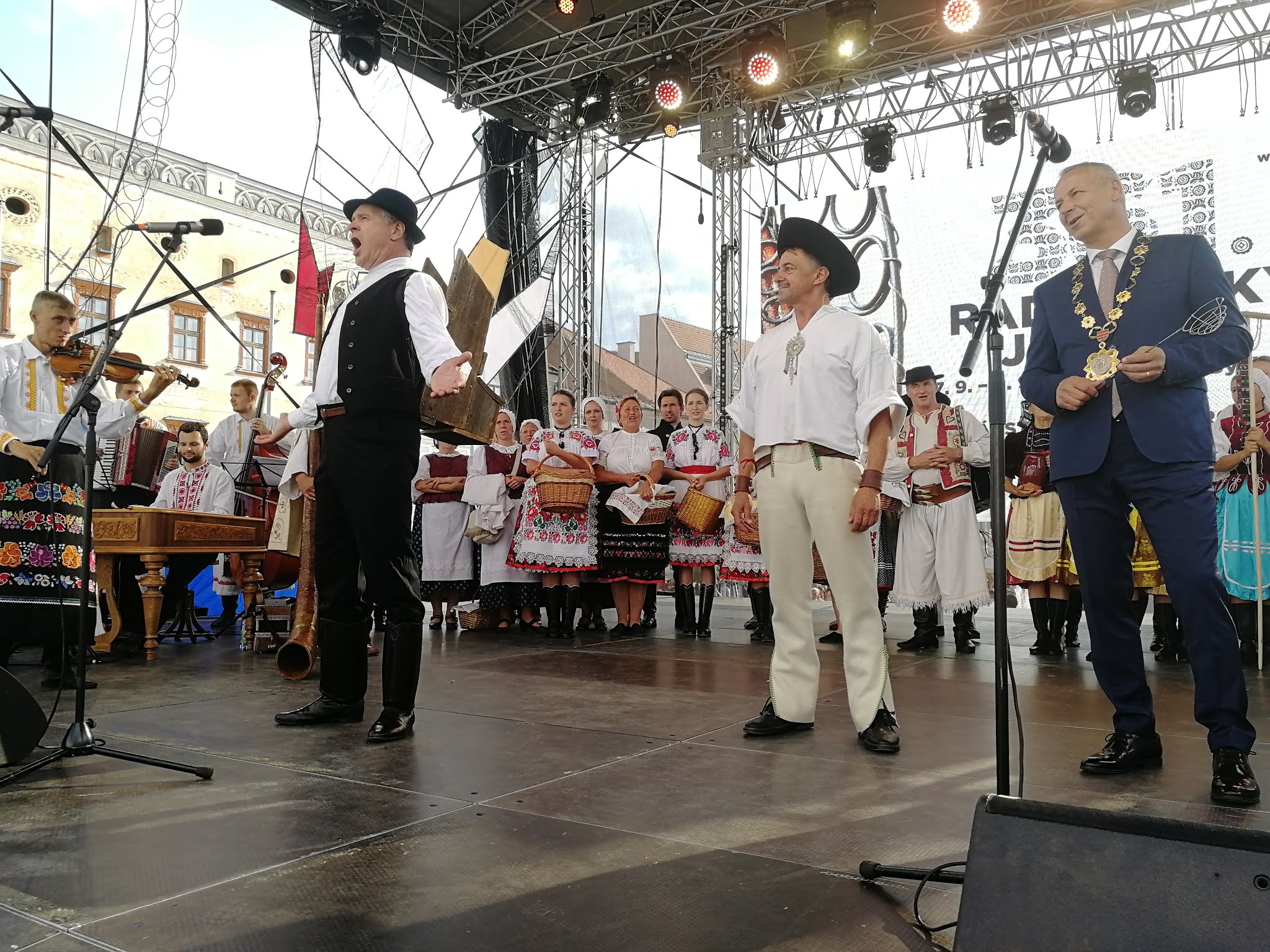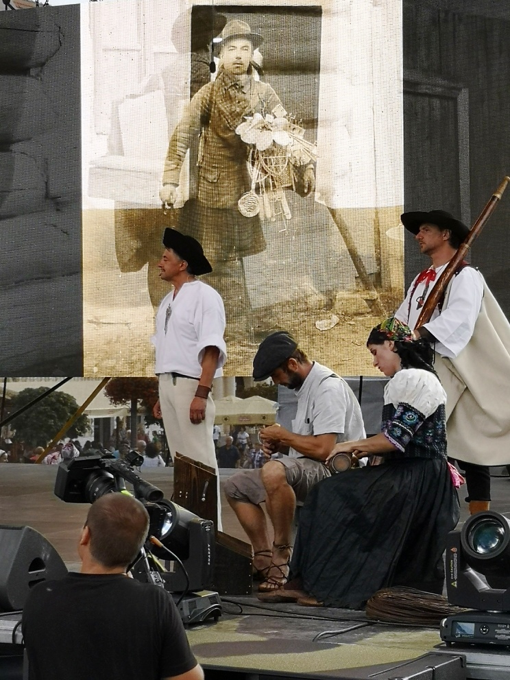 Na pódium najskôr vystúpili drotári, aby vyrobili drôtenú varešku. Po nich v krásnych krojoch prichádzali z jednotlivých regiónov remeselníci s hudobníkmi a spevákmi, aby pozdravili návštevníkov jarmoku každý po svojom. V ľudovom tóne zaspieval všetkým známy operný spevák Martin Babjak, po ňom ďalší remeselníci.