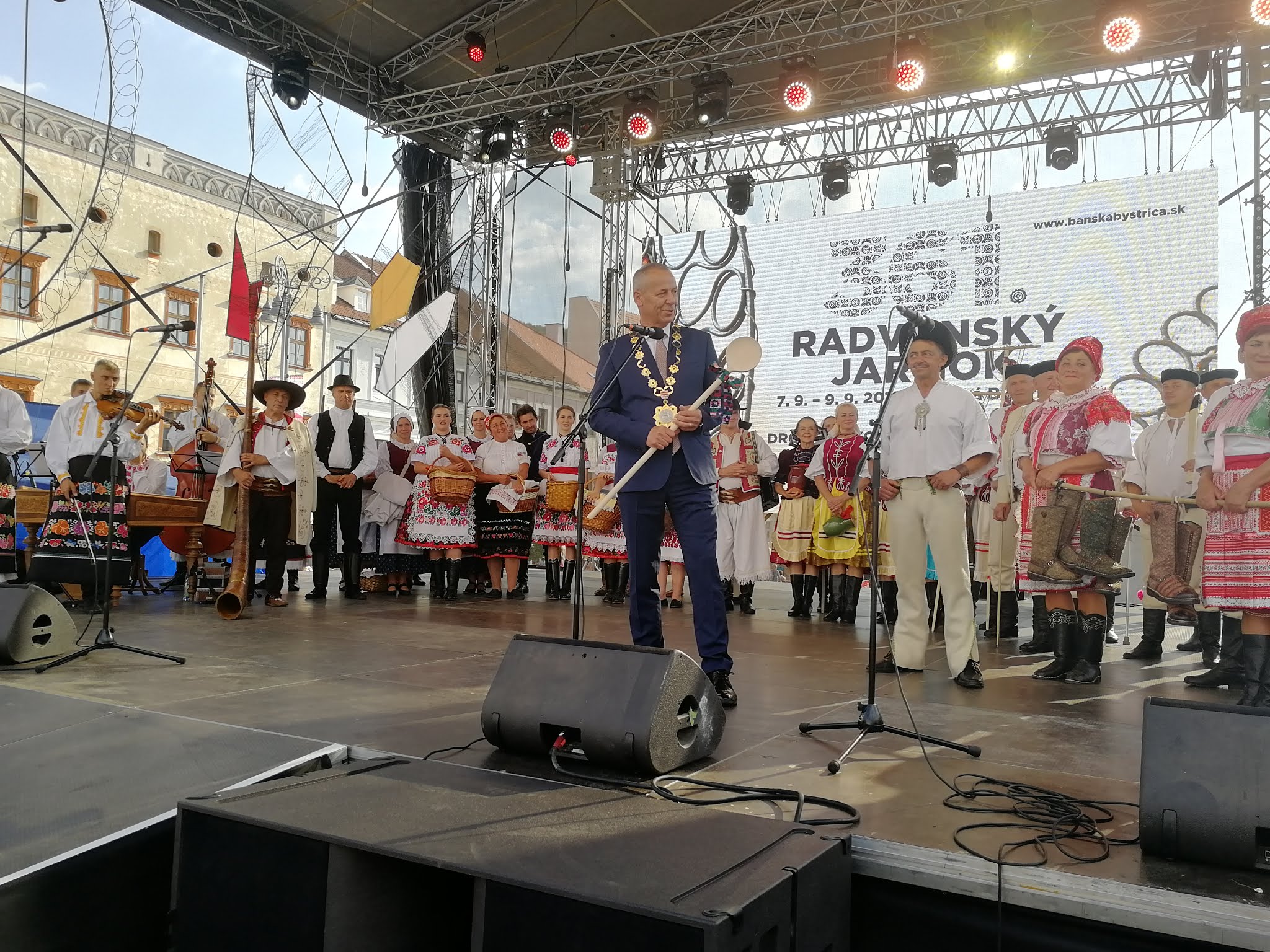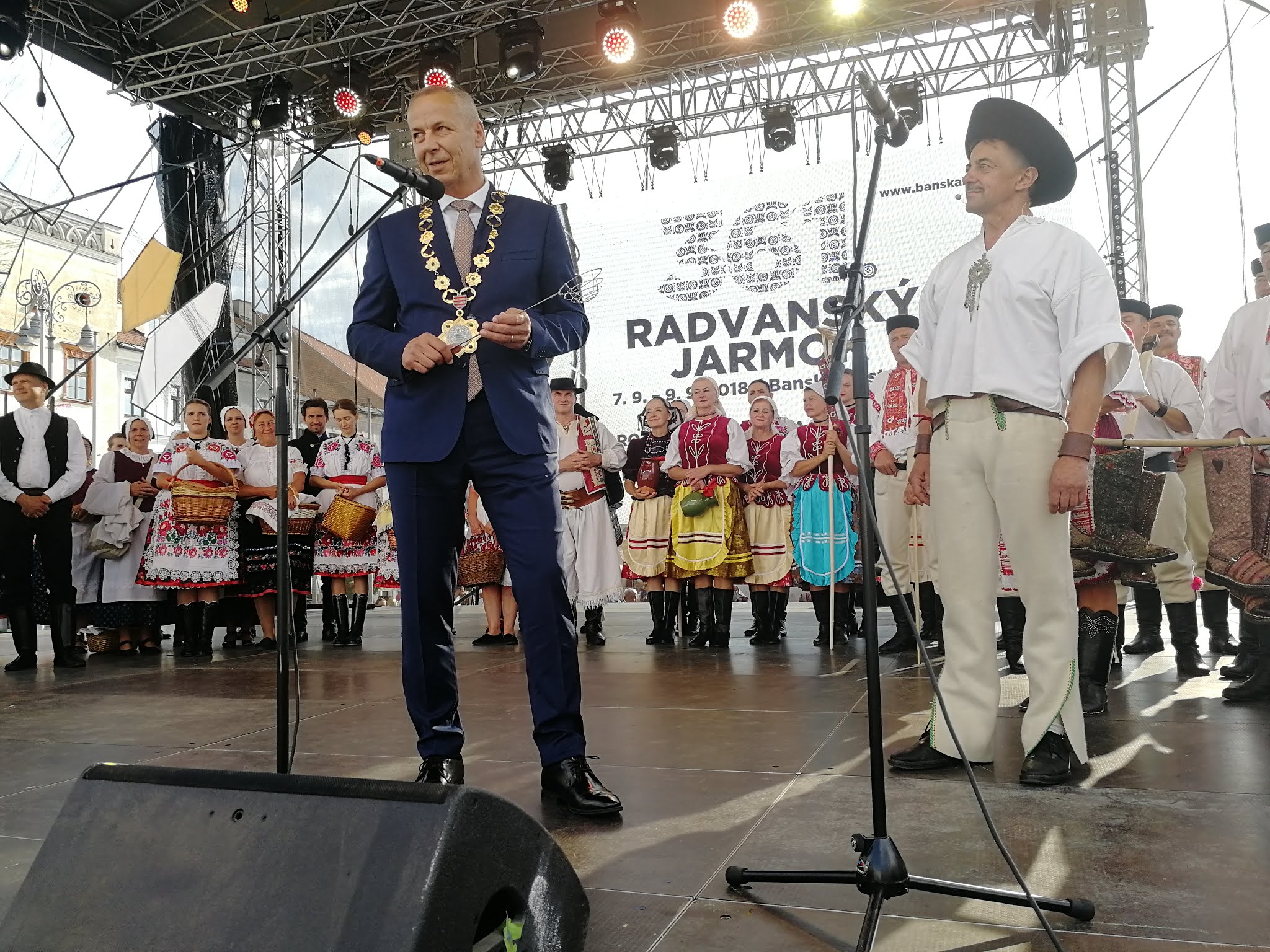 „Ako richtár Banskej Bystrice si Vás dovoľujem privítať v meste pod Urpínom, či ste prišli zďaleka či blízka a svoje remeslo s umením ste na 361. Radvanský jarmok doniesli, patrí Vám moja vďaka a prianie. Aby ste sa k svojim zákazníkom úctivo správali, aby ste všetko popredali a popri tom sa dobre zabavili. A Vy milí drotári, či sa vám podarilo upliesť z drôtu varešku? Lebo tá je symbolom Radvanského jarmoku a taká vo svete ani páru nemá, takže ja túto svoju Vám symbolicky odovzdávam a týmto aj náš jarmok jarmokov otváram.“