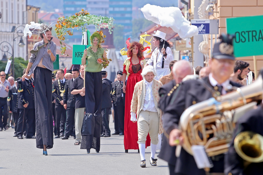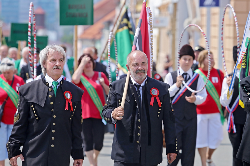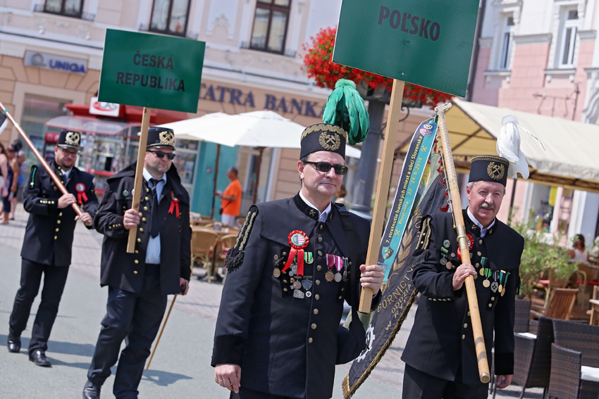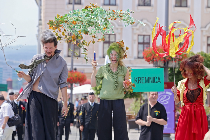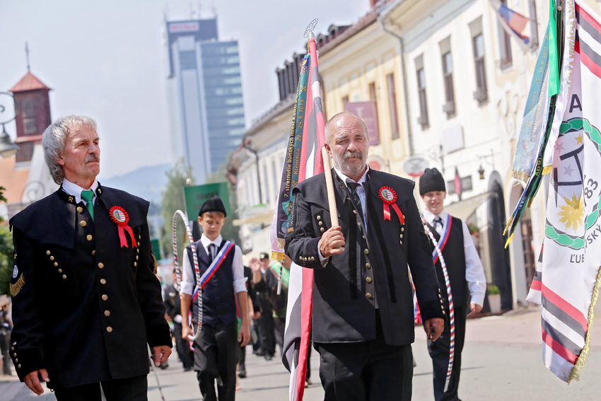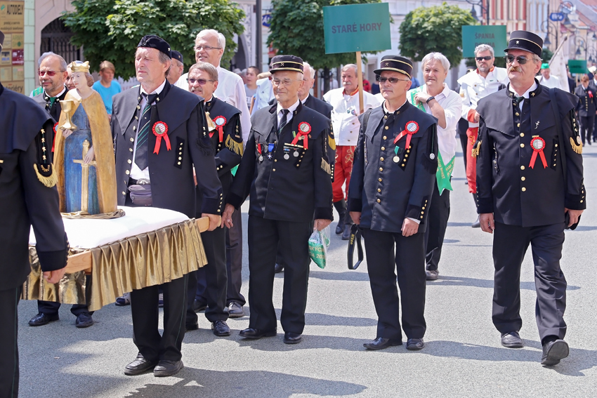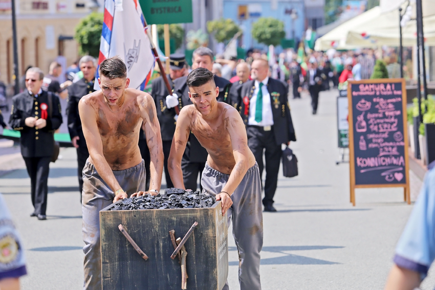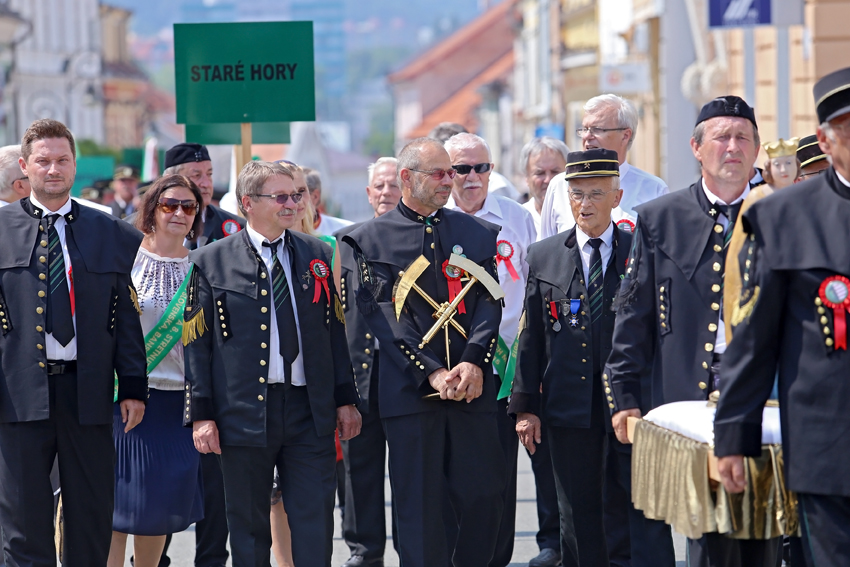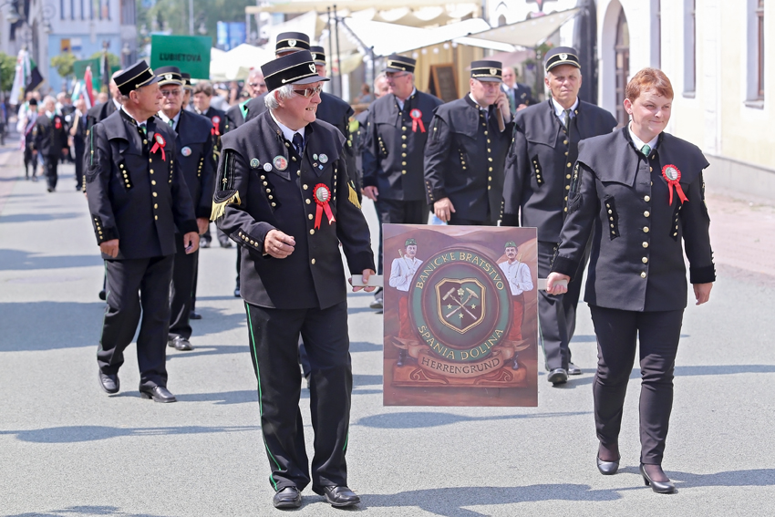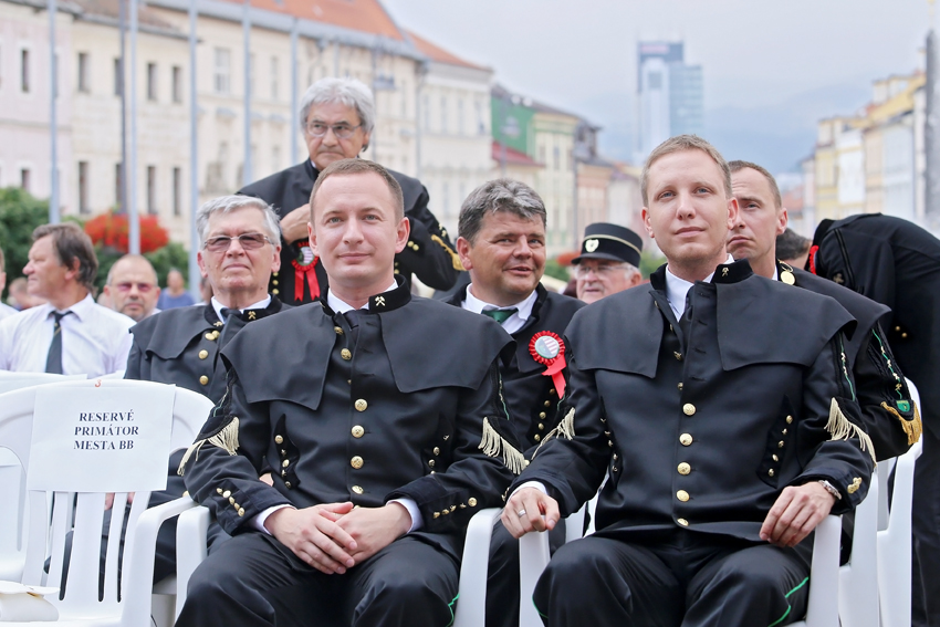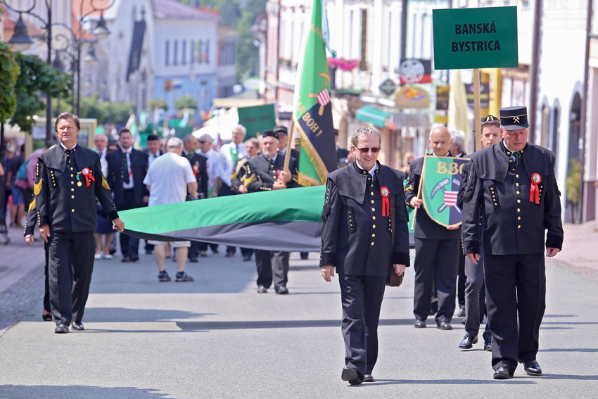 Do Banskej Bystrice zavítalo vyše 650 baníkov z baníckych spolkov Slovenska, Čiech, Maďarska a Poľska, teda z krajín V4. V sobotu po 11-tej išiel ešte v slnečnom počasí nádherný sprievod z Dolnej ulice na Námestie SNP, baníci v slávnostných uniformách so svojimi zástavami. Spolu s nimi na chodúľoch aj štyri živly – voda, vzduch zem a oheň, ktoré predstavovali herci Bábkového divadla na Rázcestí.