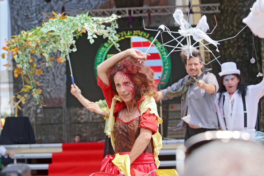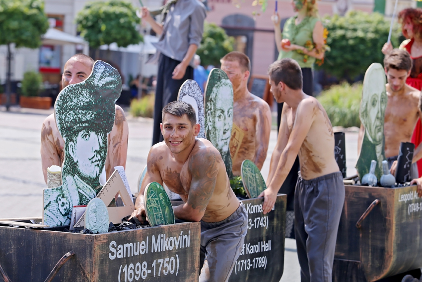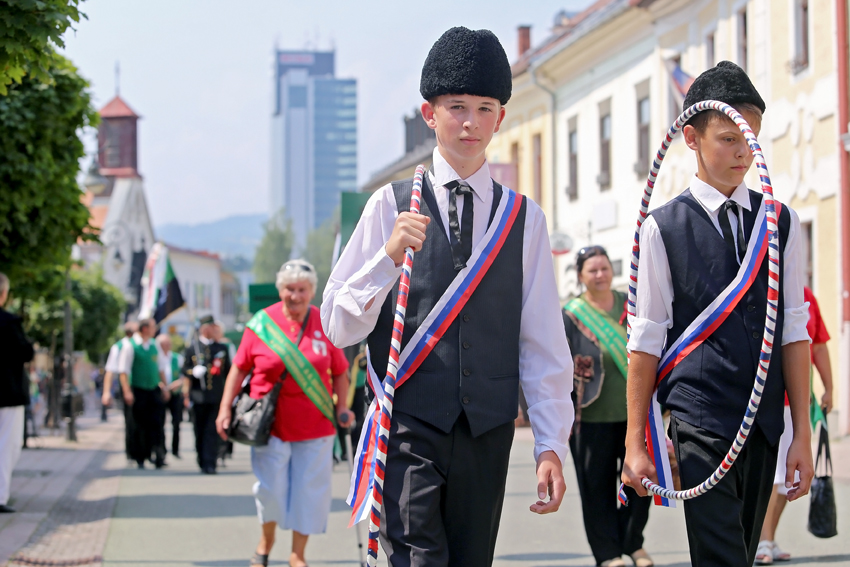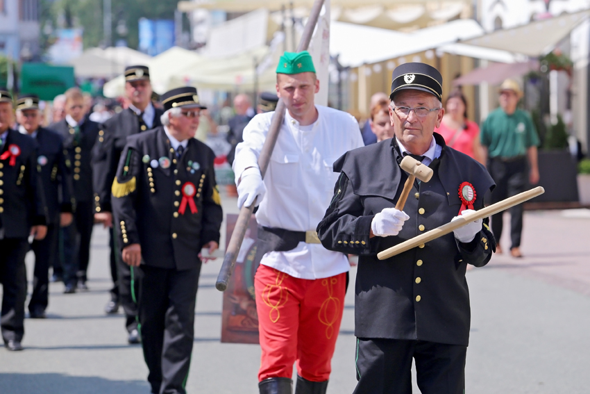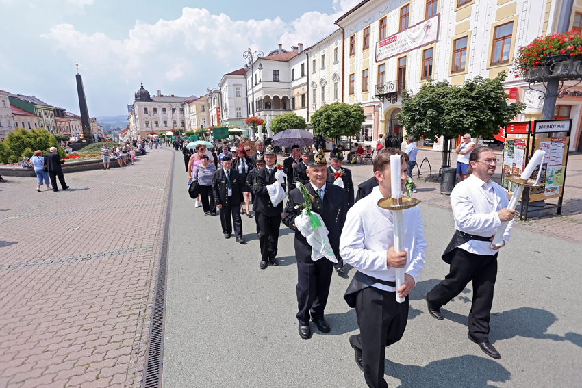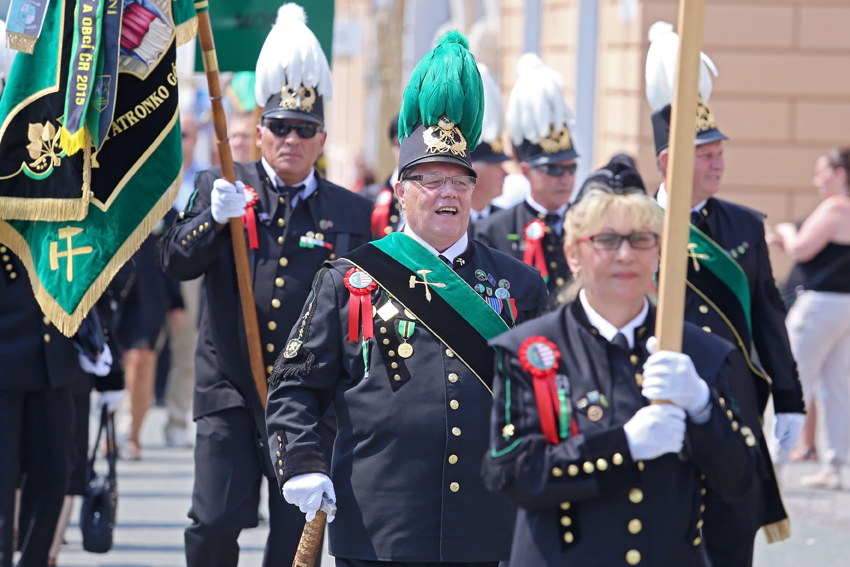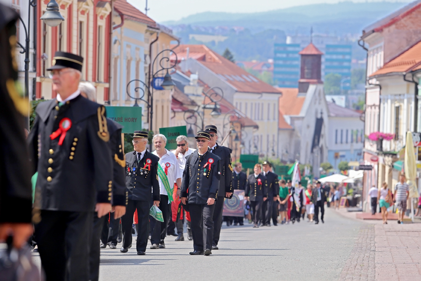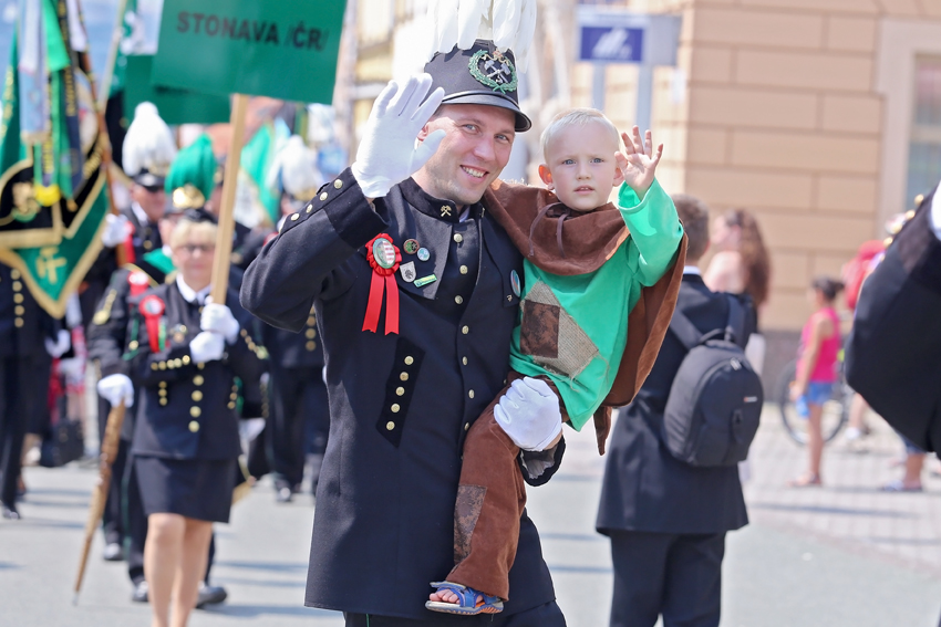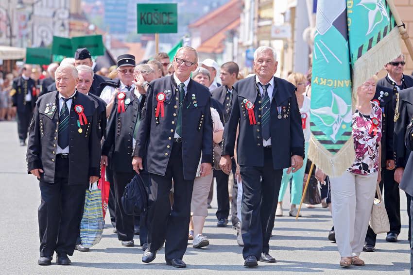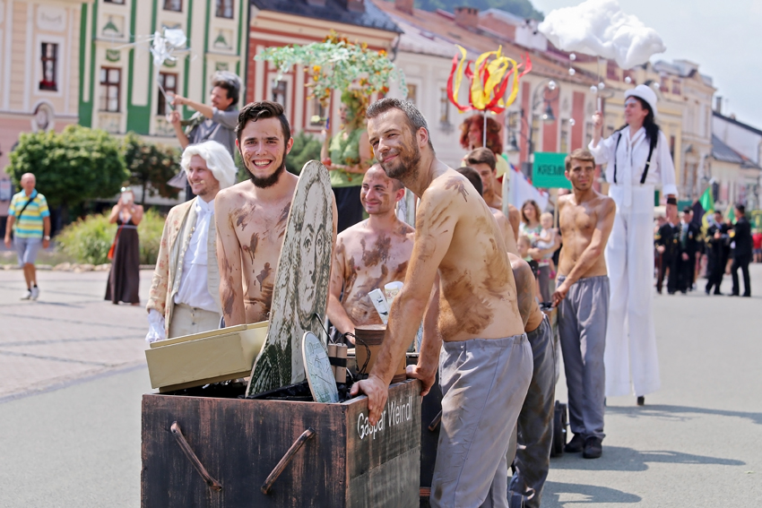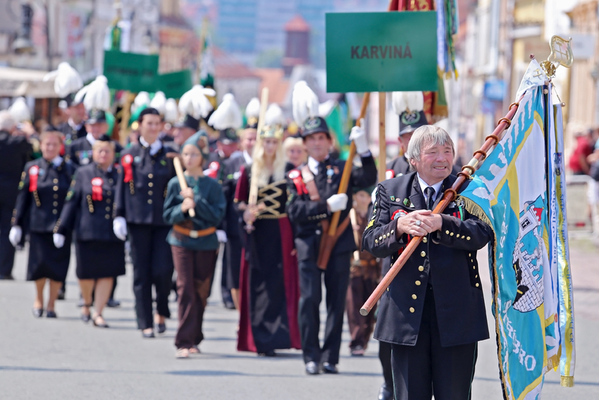 Do Banskej Bystrice zavítalo vyše 650 baníkov z baníckych spolkov Slovenska, Čiech, Maďarska a Poľska, teda z krajín V4. V sobotu po 11-tej išiel ešte v slnečnom počasí nádherný sprievod z Dolnej ulice na Námestie SNP, baníci v slávnostných uniformách so svojimi zástavami. Spolu s nimi na chodúľoch aj štyri živly – voda, vzduch zem a oheň, ktoré predstavovali herci Bábkového divadla na Rázcestí.