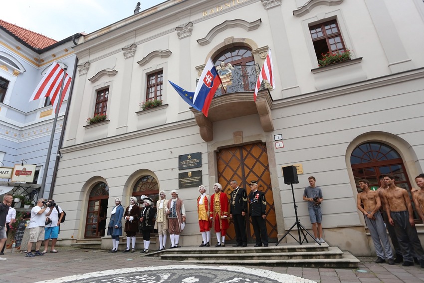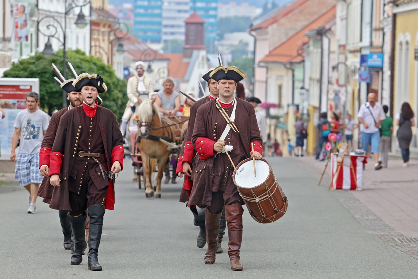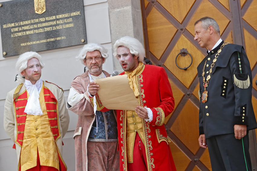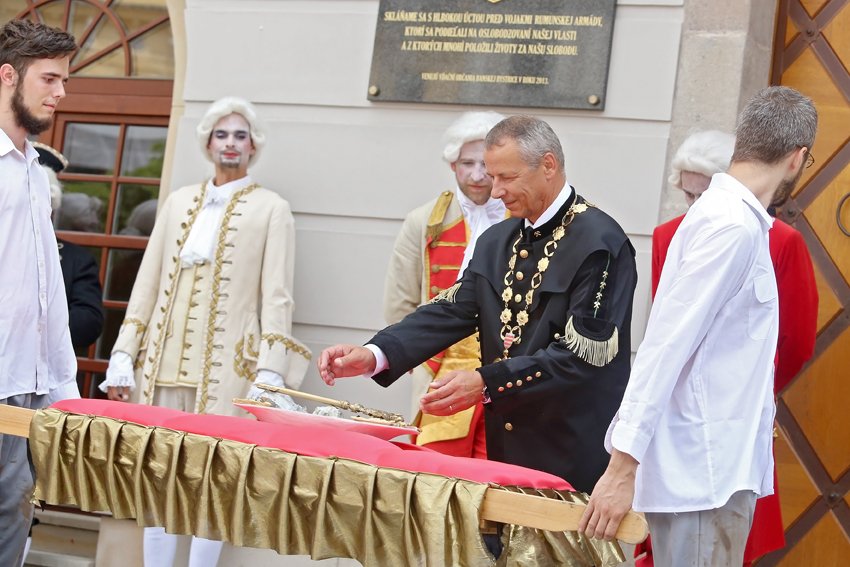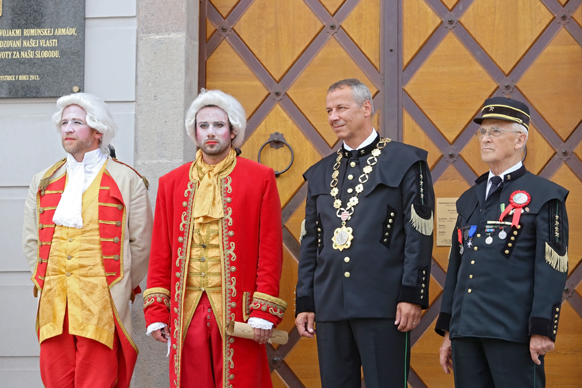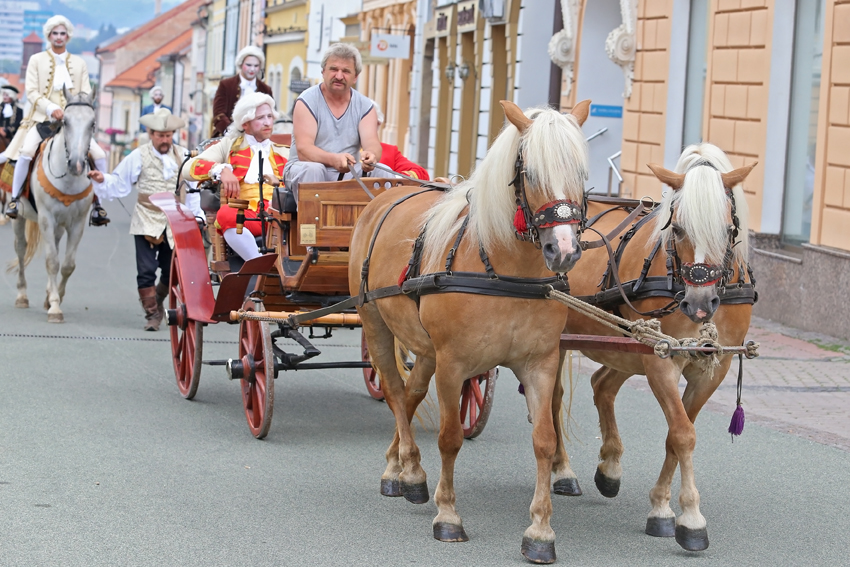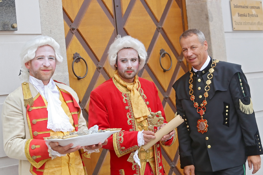 Po krátkom vyjasnení oblohy ešte mohol prísť z Dolnej ulice k historickej Radnici sprievod vojakov v dobových uniformách, za ktorými išli v koči ťahanom koňmi s jazdeckou ochranou dvaja princovia. Išlo o dobovú rekonštrukciu návštevy najstaršieho syna Márie Terézie Jozefa II. (Martin Nahálka) a jeho brata Leopolda II. (Róbert Jakab) po banských mestách spred 251 rokov. Pred Radnicou im primátor odovzdal symbolický kľúč od mesta a pobral sa s nimi na vážny rozhovor.