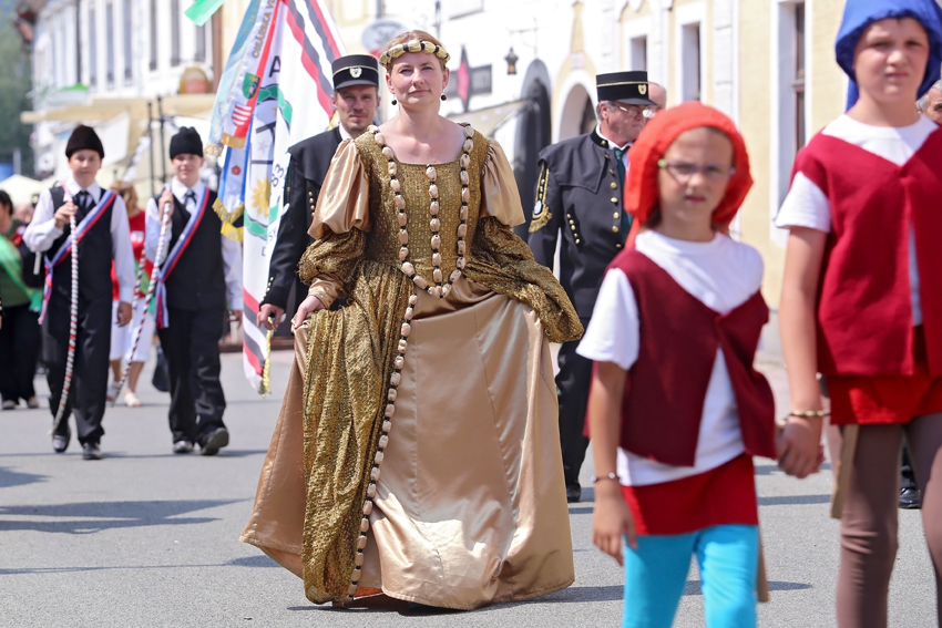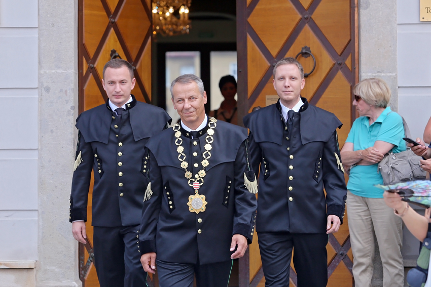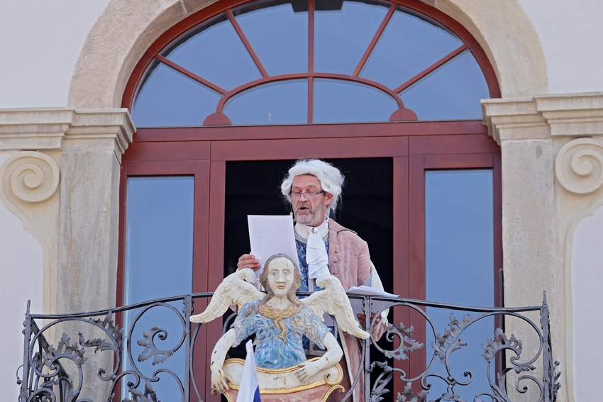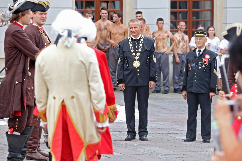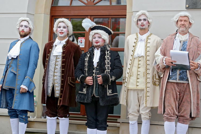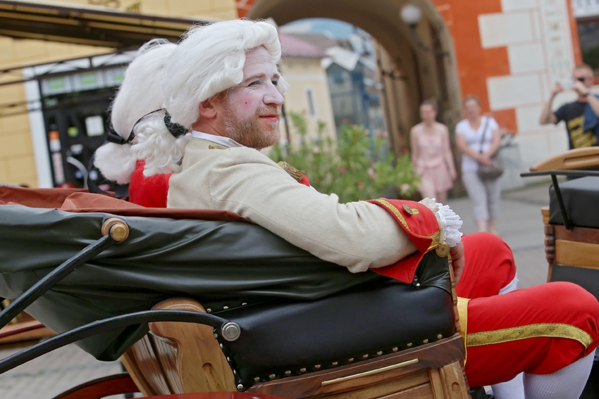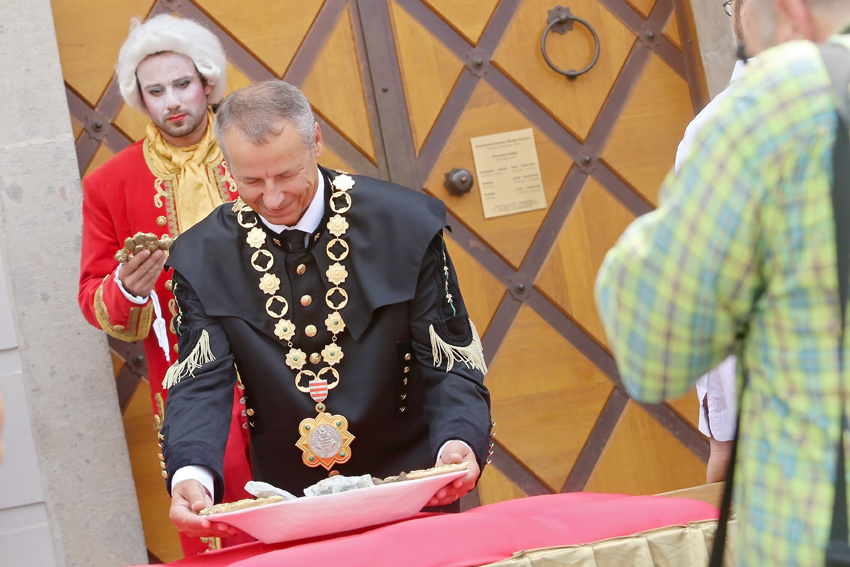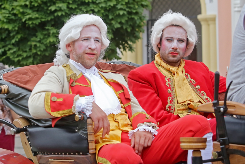 Po krátkom vyjasnení oblohy ešte mohol prísť z Dolnej ulice k historickej Radnici sprievod vojakov v dobových uniformách, za ktorými išli v koči ťahanom koňmi s jazdeckou ochranou dvaja princovia. Išlo o dobovú rekonštrukciu návštevy najstaršieho syna Márie Terézie Jozefa II. (Martin Nahálka) a jeho brata Leopolda II. (Róbert Jakab) po banských mestách spred 251 rokov. Pred Radnicou im primátor odovzdal symbolický kľúč od mesta a pobral sa s nimi na vážny rozhovor.
