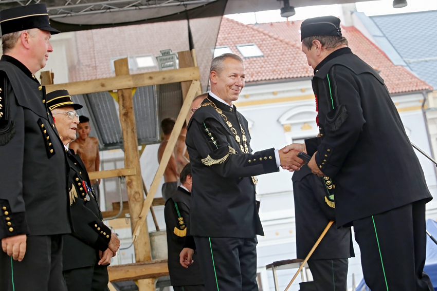 Potom štátny tajomník Ministerstva hospodárstva SR Miroslav Obert spolu s predsedom Združenia baníckych spolkov na Slovensku Erikom Sombathym a predsedom Banskobystrického baníckeho cechu Mikulášom Beránkom odovzdávali baníkom vyznamenania. Potom sa začalo nad Banskou Bystricou nebezpečne blýskať, takže organizátori museli prerušiť ďalší program.