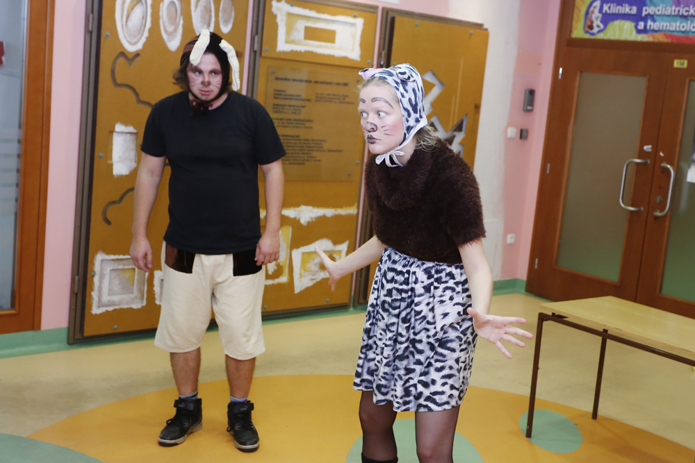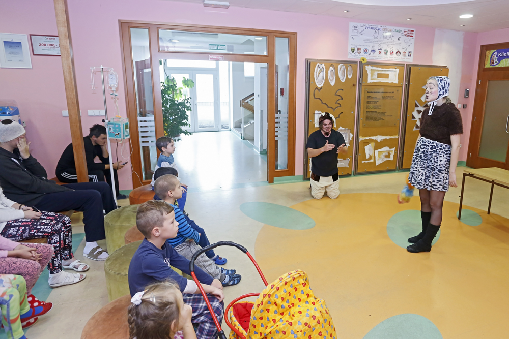 V stredu popoludní bolo v bystrickej Detskej fakultnej nemocnici veselo. Detským onkologickým pacientom prišli zahrať herci Hudobného divadla z Košíc hudobnú inscenáciu Psíček a mačička.