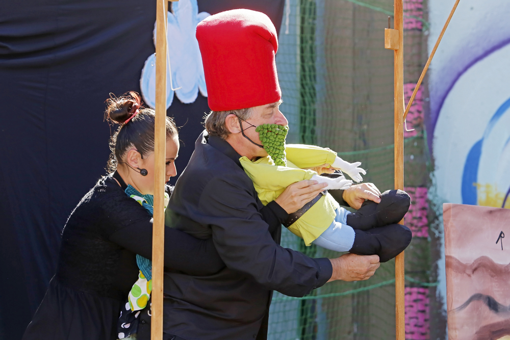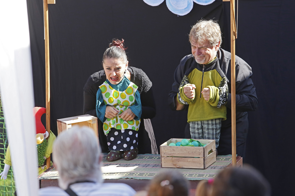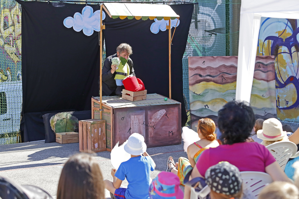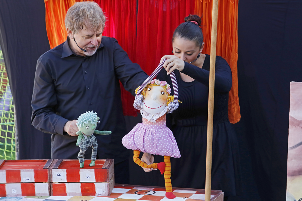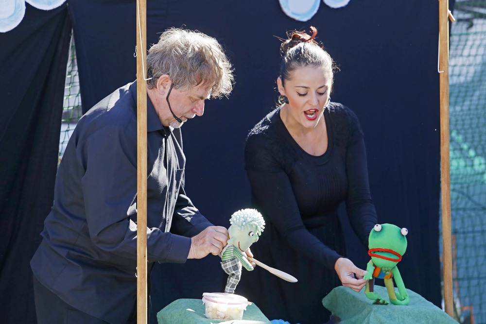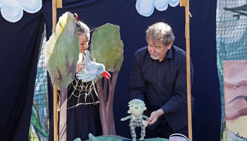 Malí i veľkí diváci si posadli na stoličky v športovom areáli pod oporným múrom na Rudohorskej pred malú scénu susedného Divadla pod balkónom – Harry Teatro. A mohla začať klasická rozprávka Pavla Dobšinského Janko Hraško v novej úprave.