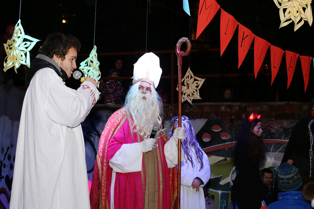 Na tradičnom mieste pod oporným múrom na Rudohorskej sa v nedeľu podvečer zišli stovky detí s rodičmi i starými rodičmi na podujatí „Buď ako Mikuláš“. Dobrú náladu aj s darčekmi priniesol do Sásovej Mikuláš so svojimi pomocníkmi – čertom a anjelmi. Prítomným deťom rozdávali sladkosti a mandarínky.