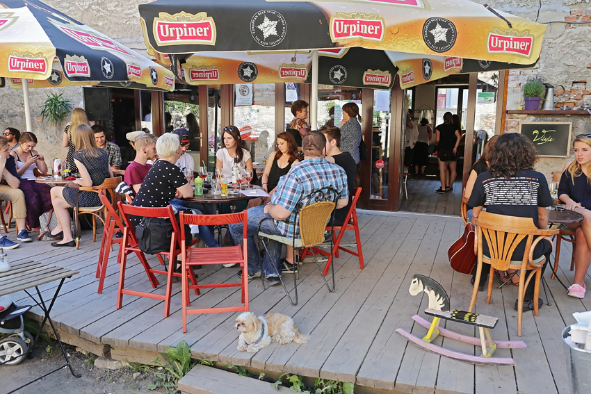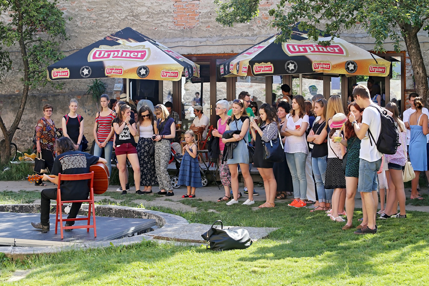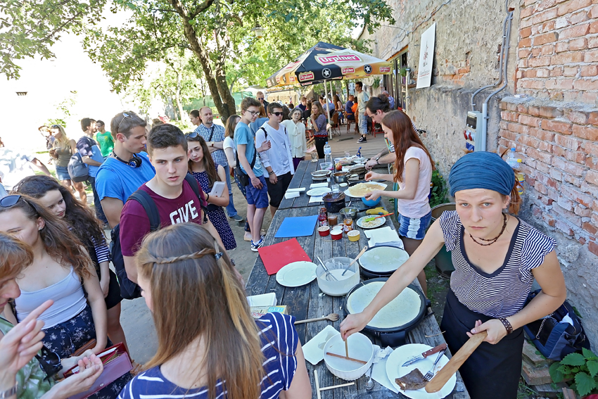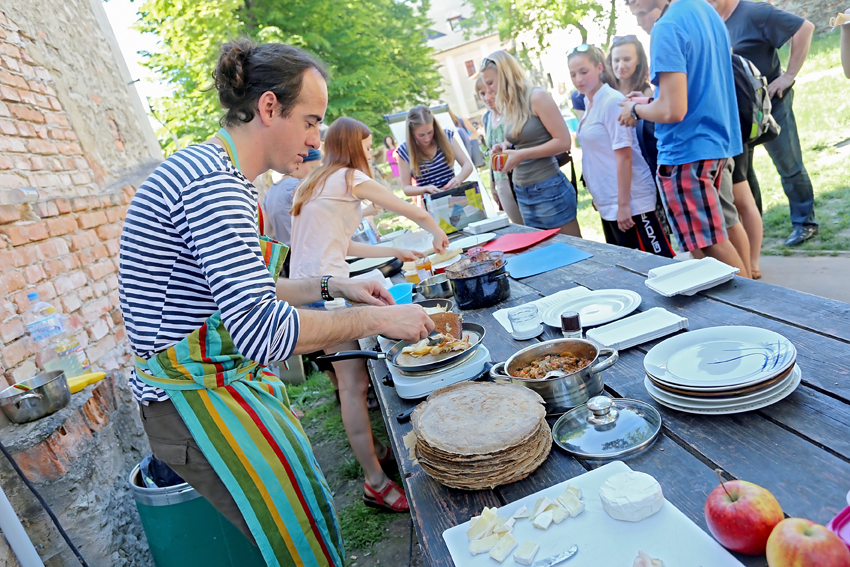 Podávali sa vynikajúce francúzske sladké palacinkycr?pes“, ale aj slané „galettes“, ktoré pripravoval Françoise – Franta z Ostravy. Vonku v Záhrade sa hral petang (Paul & Virgil). Návštevníci sedeli vonku na terase i v tráve, alebo sledovali kultúrny program v externom bazéne či na internom pódiu v sále. Všetci sa skvele bavili, vrátane detí, ktoré sa tu mohli voľne hrať.