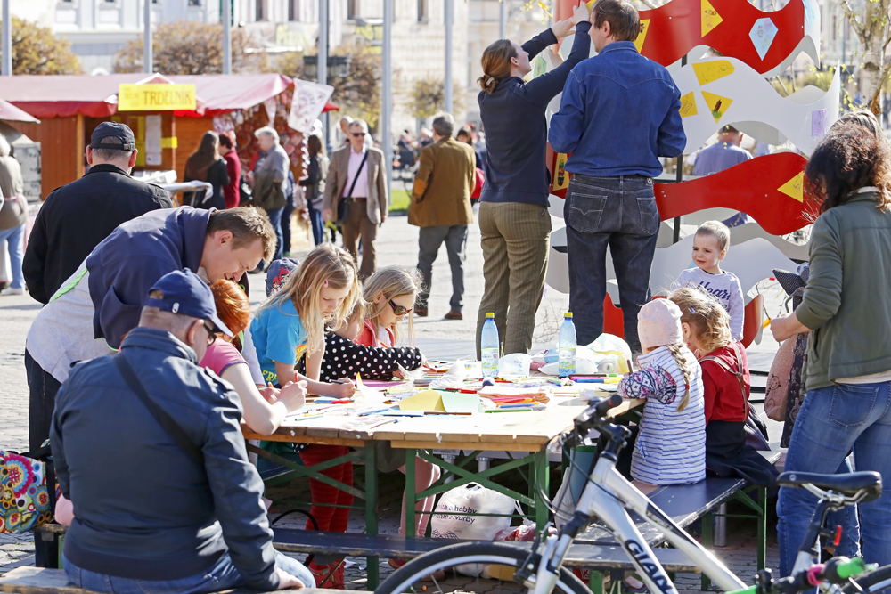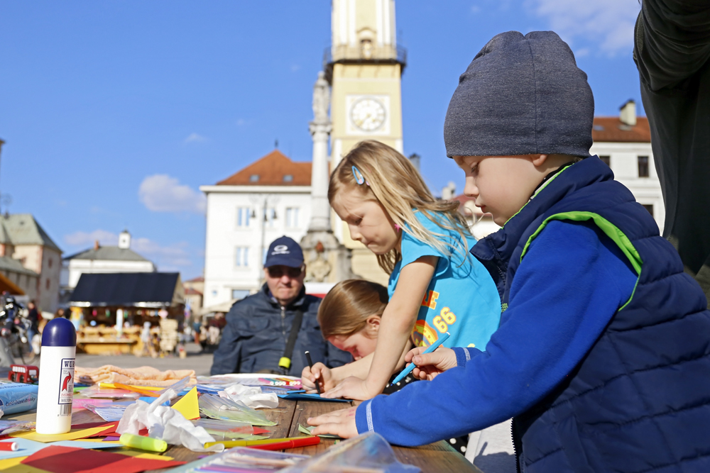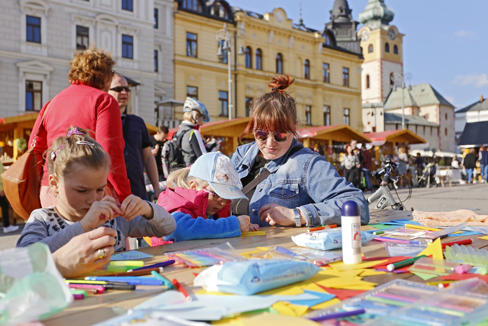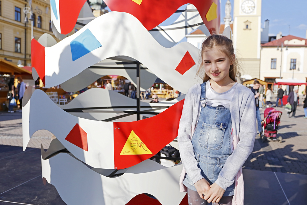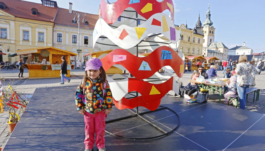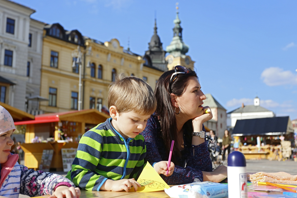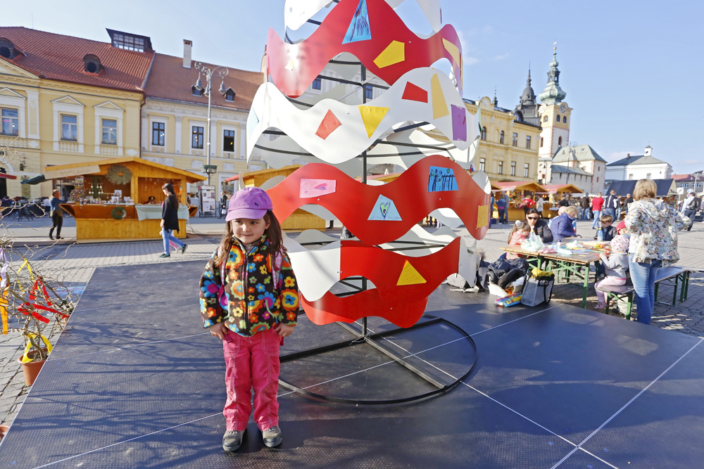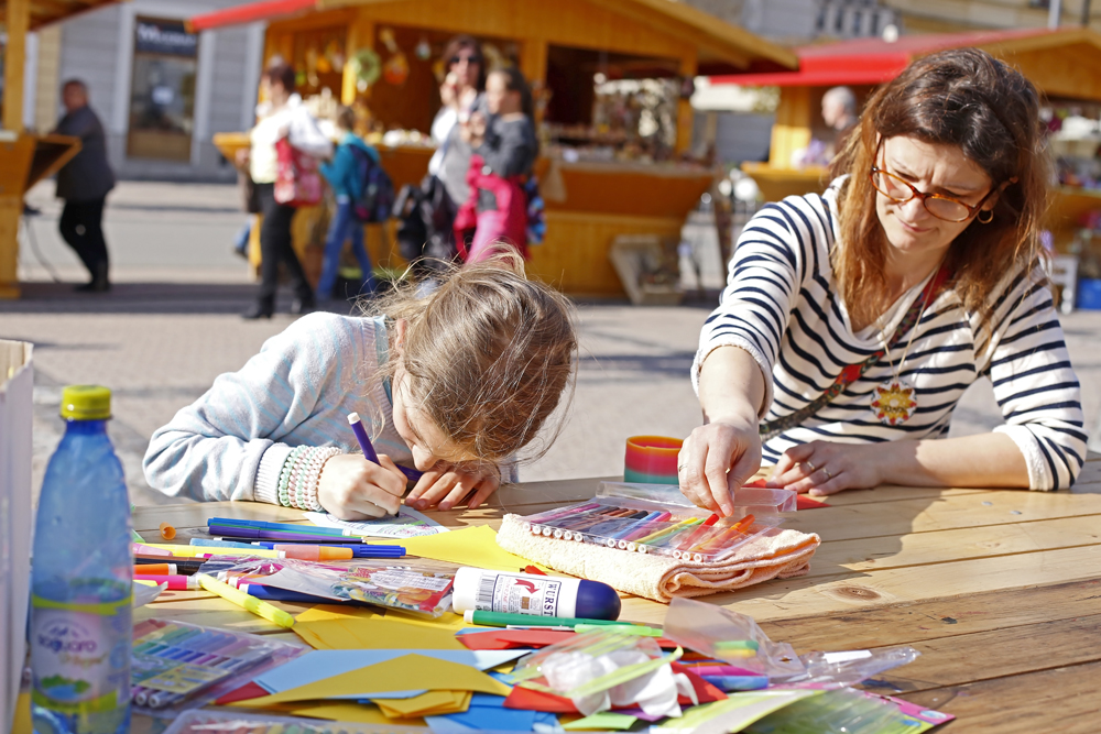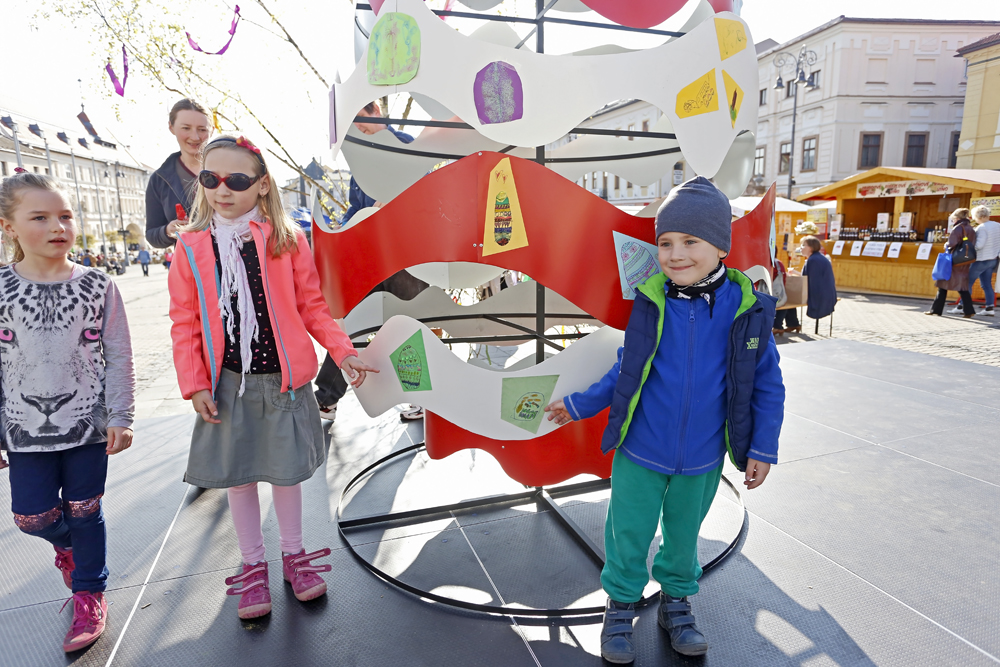 Pri tvorivom stolíku sa zastavovali rodičia so svojimi ratolesťami, ktoré maľovali podľa vlastnej fantázie fixkami rôzne obrázky. Pomáhali im pracovníci a pracovníčky mestského úradu, ktoré malé detské dielka potom lepili na veľkonočné vajce.