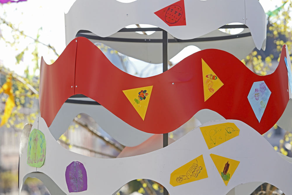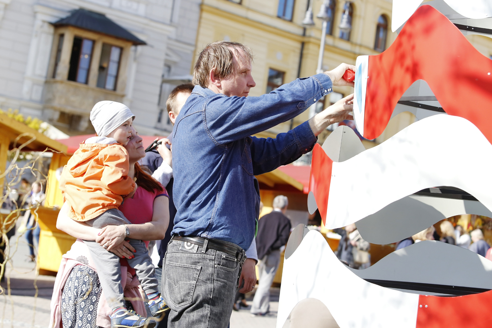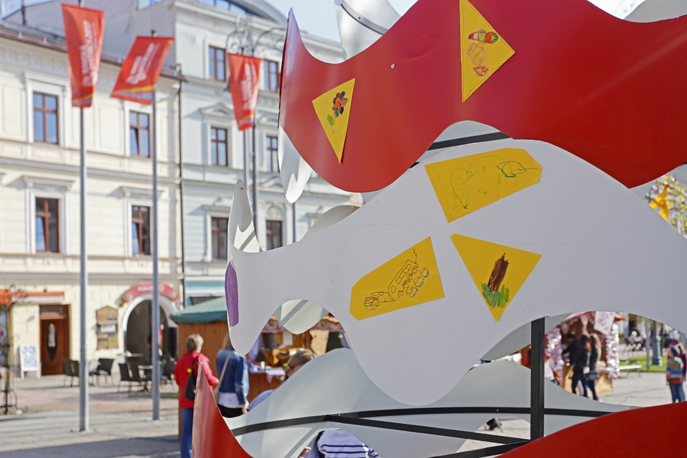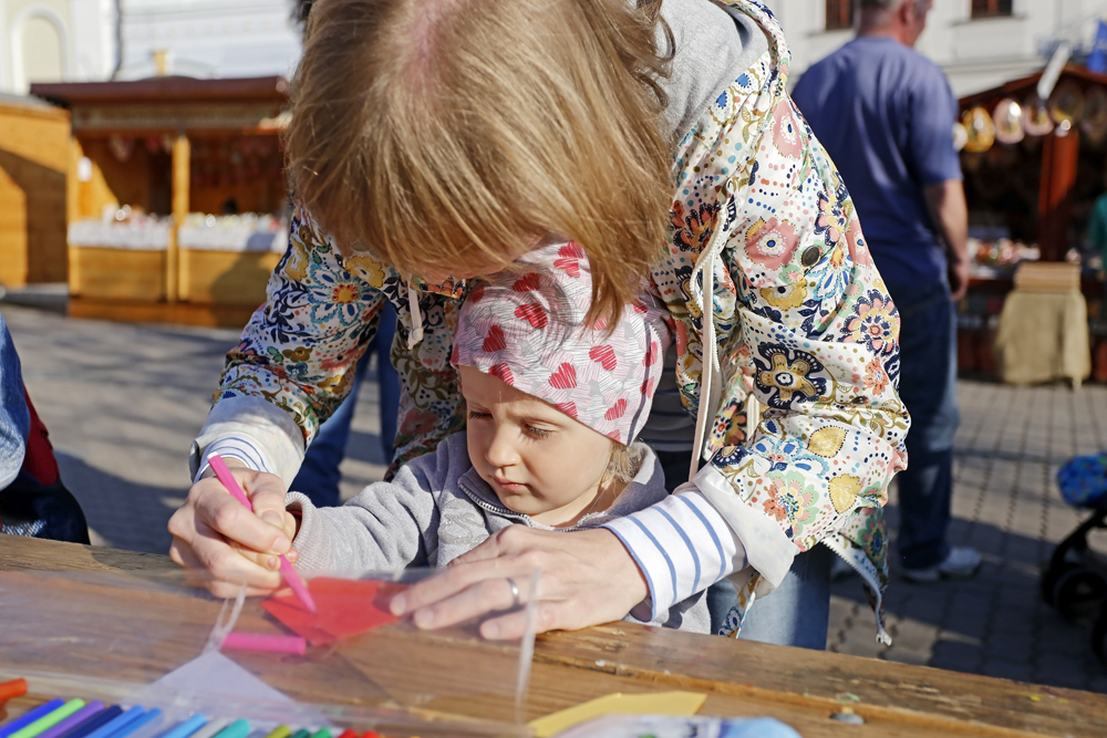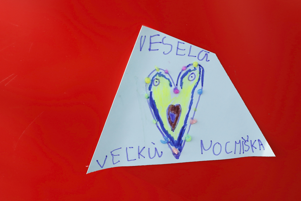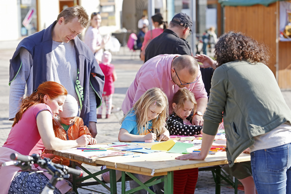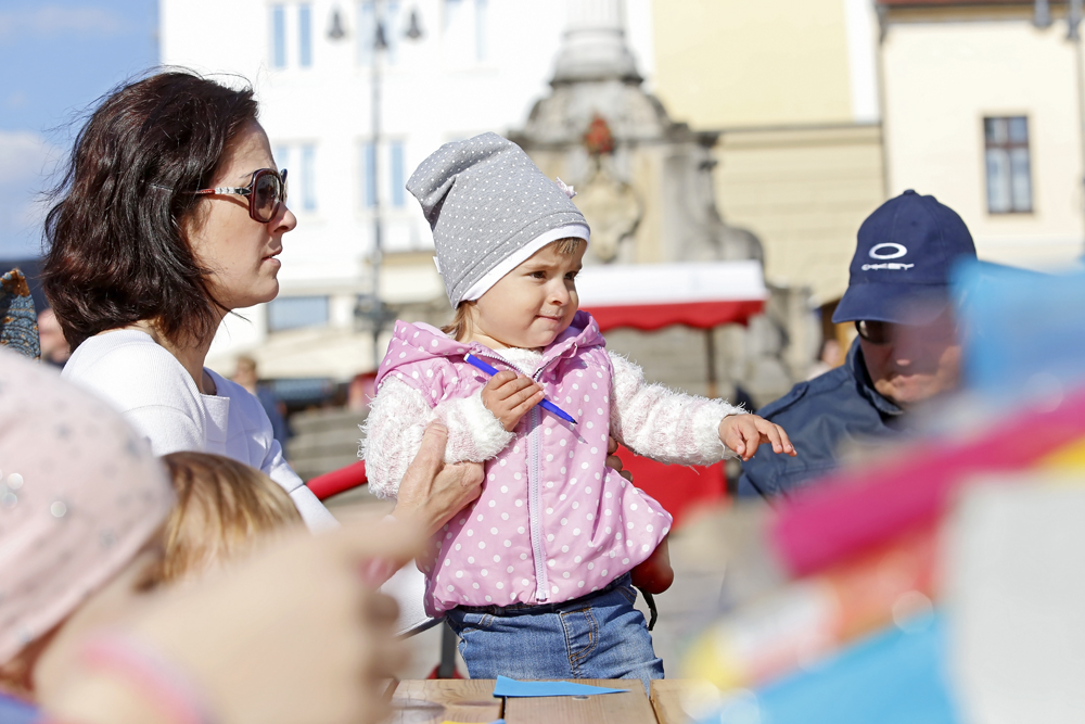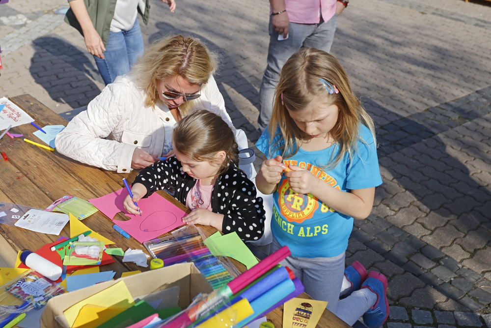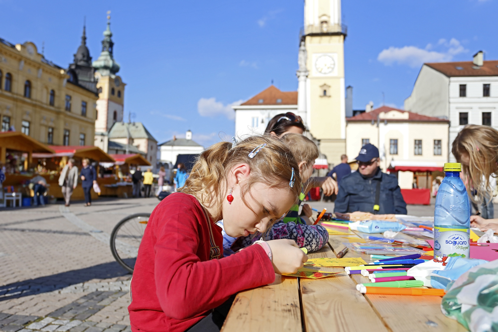 Pri tvorivom stolíku sa zastavovali rodičia so svojimi ratolesťami, ktoré maľovali podľa vlastnej fantázie fixkami rôzne obrázky. Pomáhali im pracovníci a pracovníčky mestského úradu, ktoré malé detské dielka potom lepili na veľkonočné vajce.