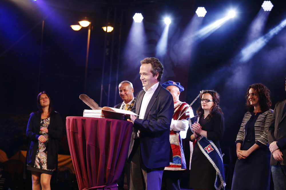 Primátor mesta prečítal historickú listinu, podľa ktorej na znak dohody medzi rodom radvanských a mestom Banská Bystrica ponesie jarmok navždy názov Radvanský a bude sa konať vždy v druhú septembrovú sobotu a nedeľu v katastrálnom území mesta pod Urpínom.