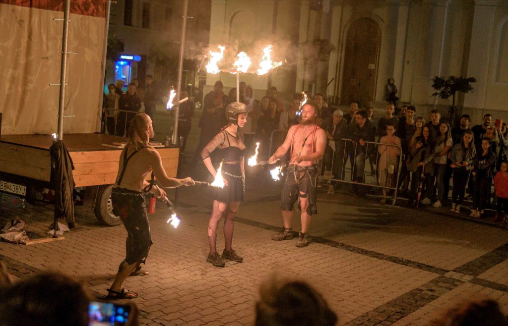 Piatkový program vyvrcholil jedinečnou bubnovou šou známej skupiny Campana Batucada a ohňovou šou v podaní skupiny Kyselí Krastafci.