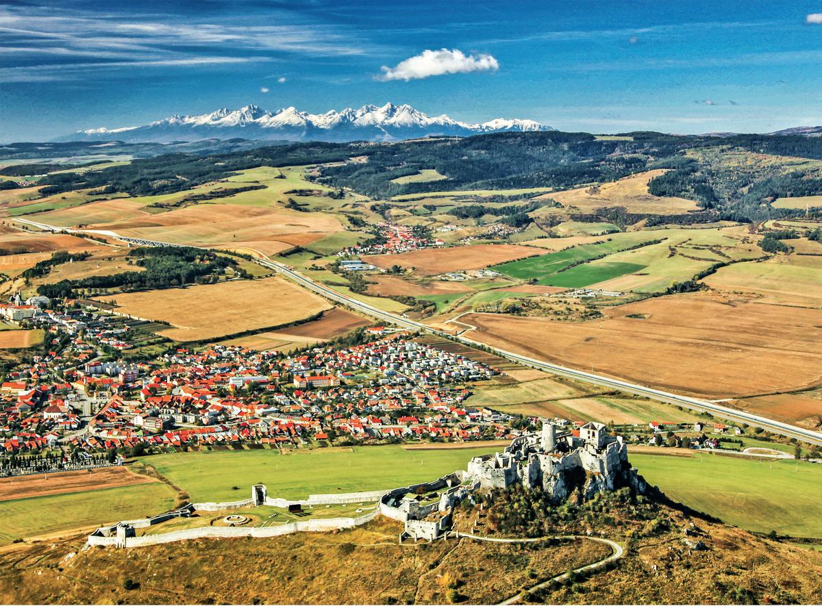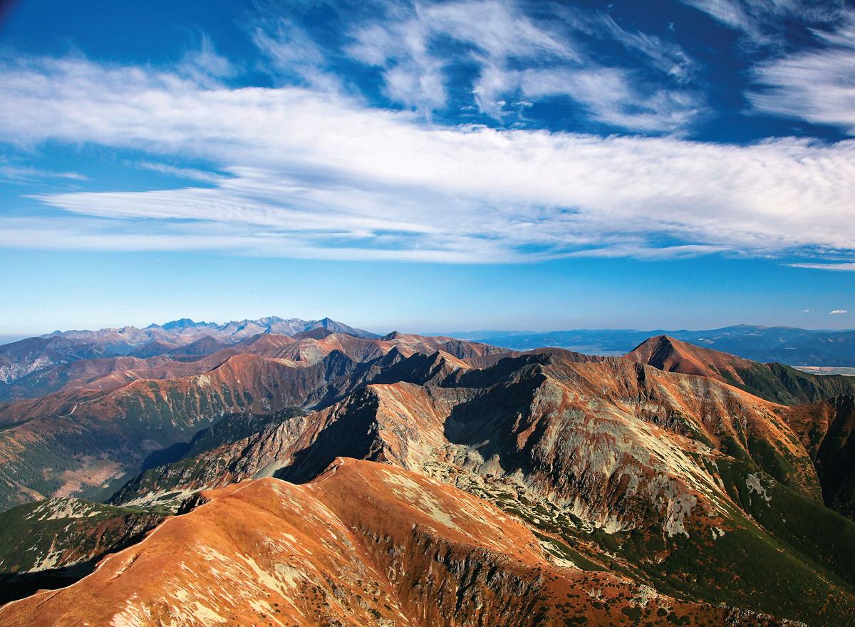 Ponad miesta, kde sa začínajú dvíhať zalesnené vrchy, až po fatranské hole a tatranské štíty. Pred zrakom defilujú pestré vzory šírych polí, farebná mozaika miest a vidieka, modré stuhy riek, prírodou i ľuďmi stvorené jazerá, jasné aj hlboké odtiene zelených lesov. Pohľad na Slovensko z neba je spoznávaním, ale zároveň umeleckým zážitkom.