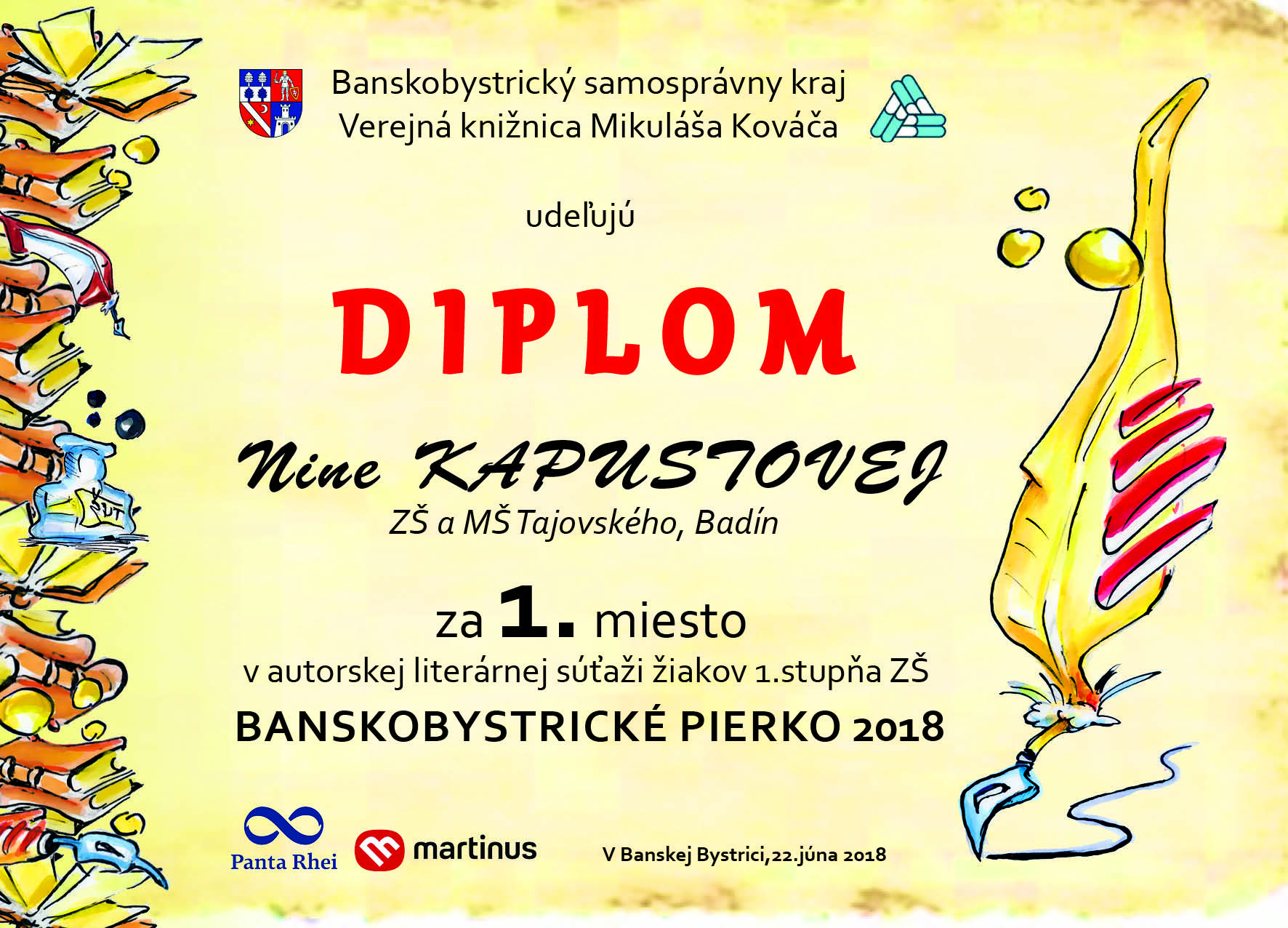Výsledky literárnej súťaže „Banskobystrické pierko 2018“ v jej 1. ročníku