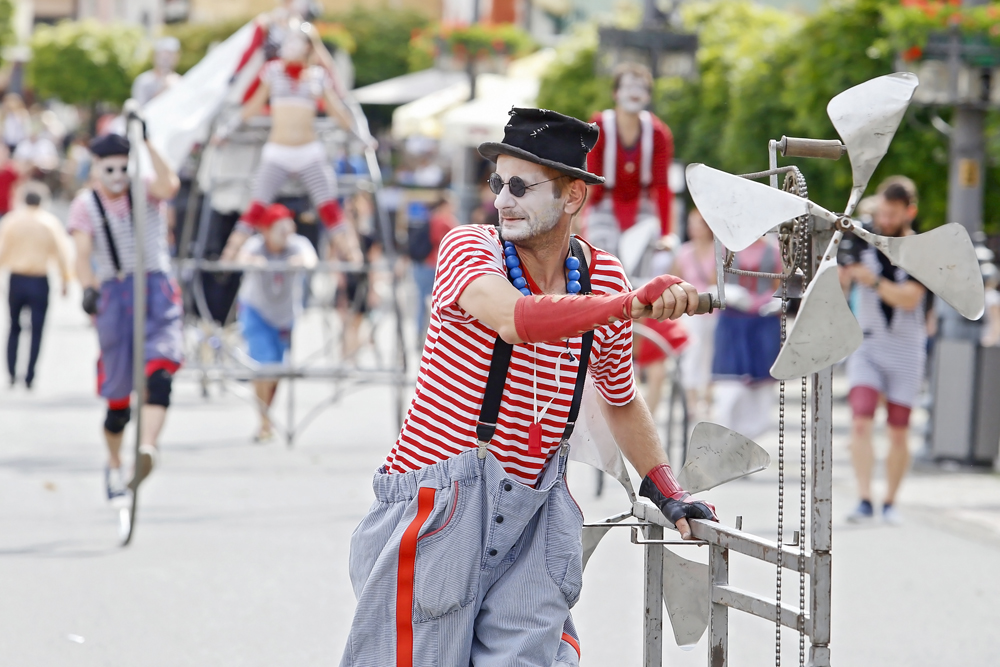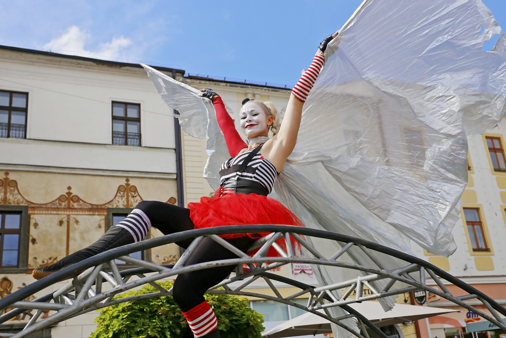 Pozvánkou na festival bol o štvrtej popoludní sprievod mestom Banská Bystrica. Svoje unikátne Vysoké snění predviedlo Bystričanom a návštevníkom mesta pražské Divadlo V.O.S.A. Theatre. Po námestí išli na podivných kolesových vozítkach zvláštne postavičky kaukliarov pozývajúce ľudí na festival divadla a hudby.