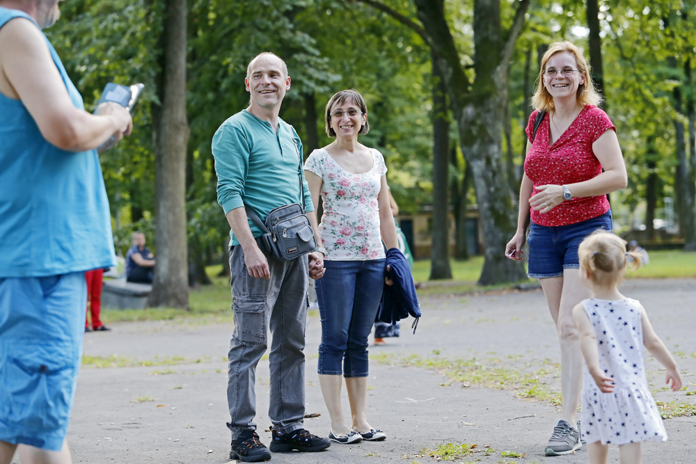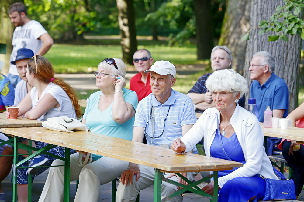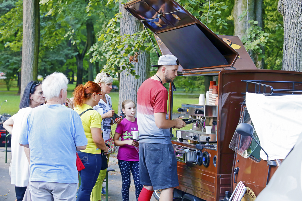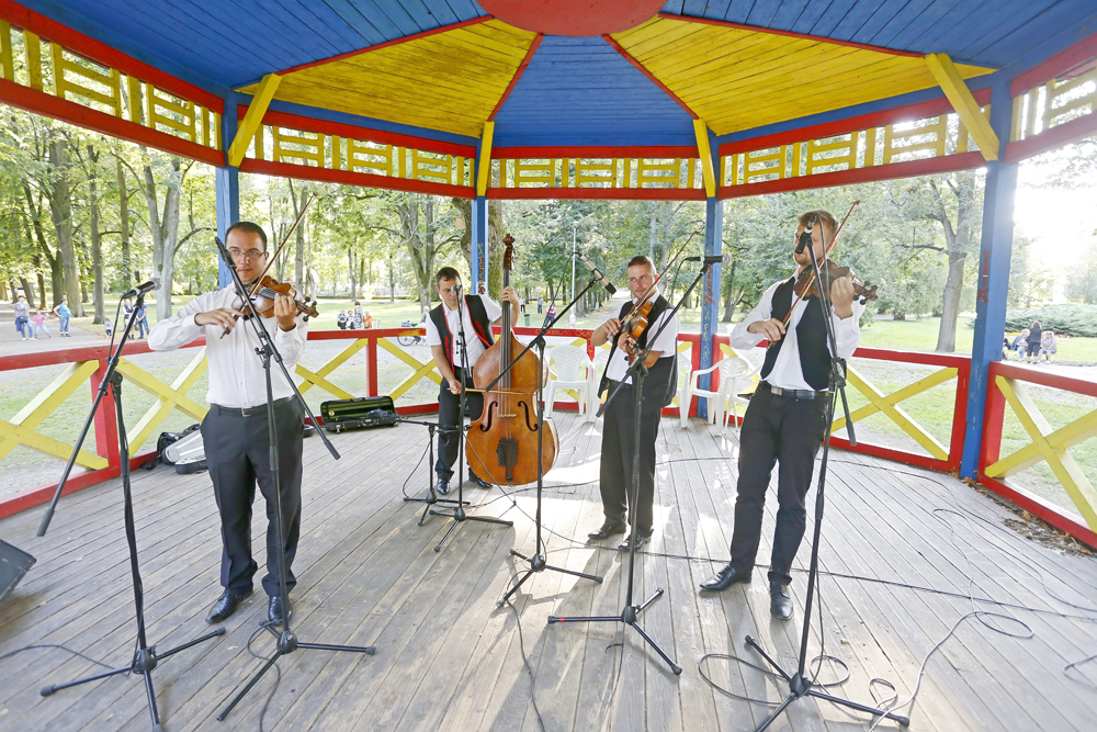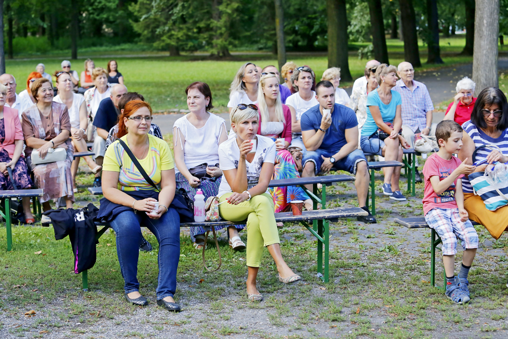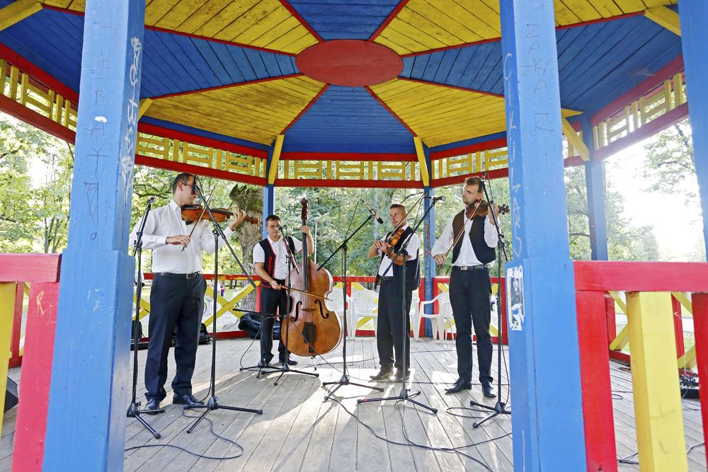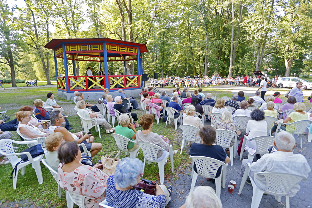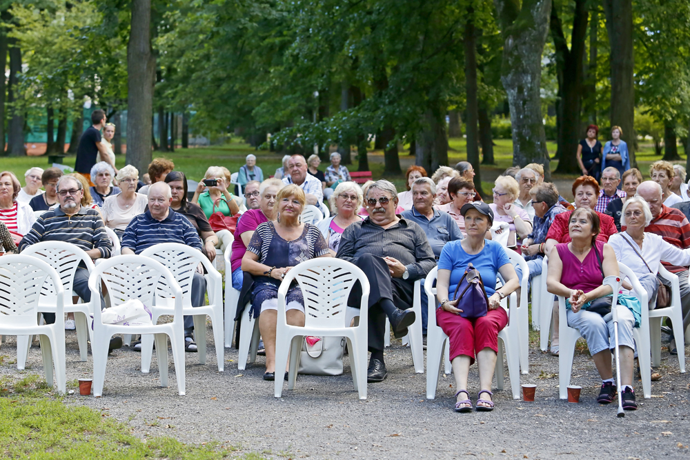 Do mestského parku prišlo nedeľu o piatej okolo 300 Bystričanov všetkých vekových skupín. V altánku boli pripravení páni hudobníci z Komorného orchestra Univerzitného folklórneho súboru Mladosť a vedľa sa bezplatne podával čaj alebo káva.