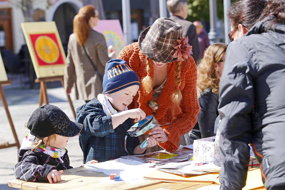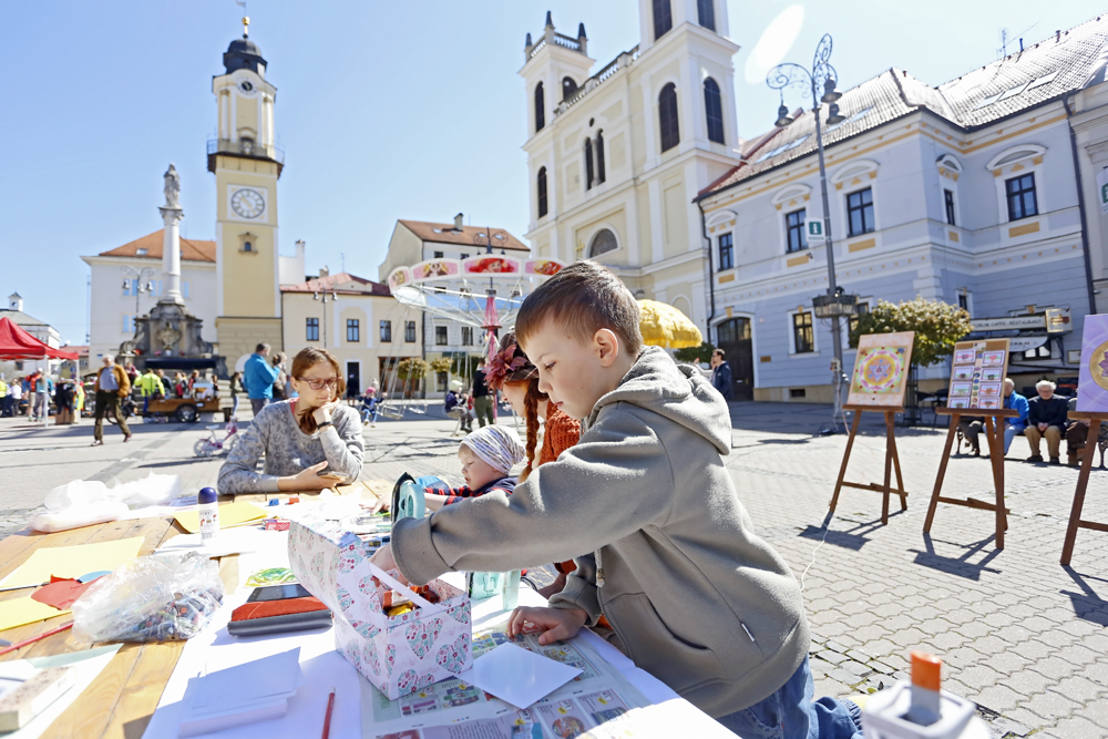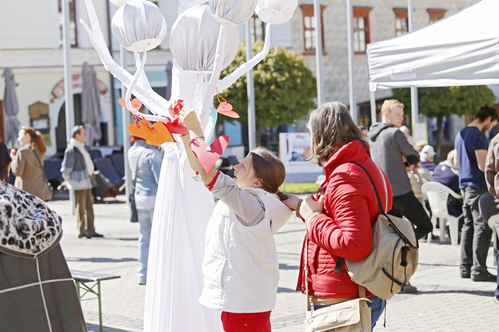 Na námestí boli v plnej permanencii aj tvorivé dielne pre deti, ktoré si s pomocou asistentiek pripravovali zaujímavé výtvarné dielka a papierové srdiečka, ktoré vešali na symbolický strom čerešne. S dospelákmi potom mohli kresliť na tabuľu želania lásky. Pre najmenšie deti pripravili Lánikovci klasický kolotoč a pani Tünde predávala originálnu cukrovú vatu.