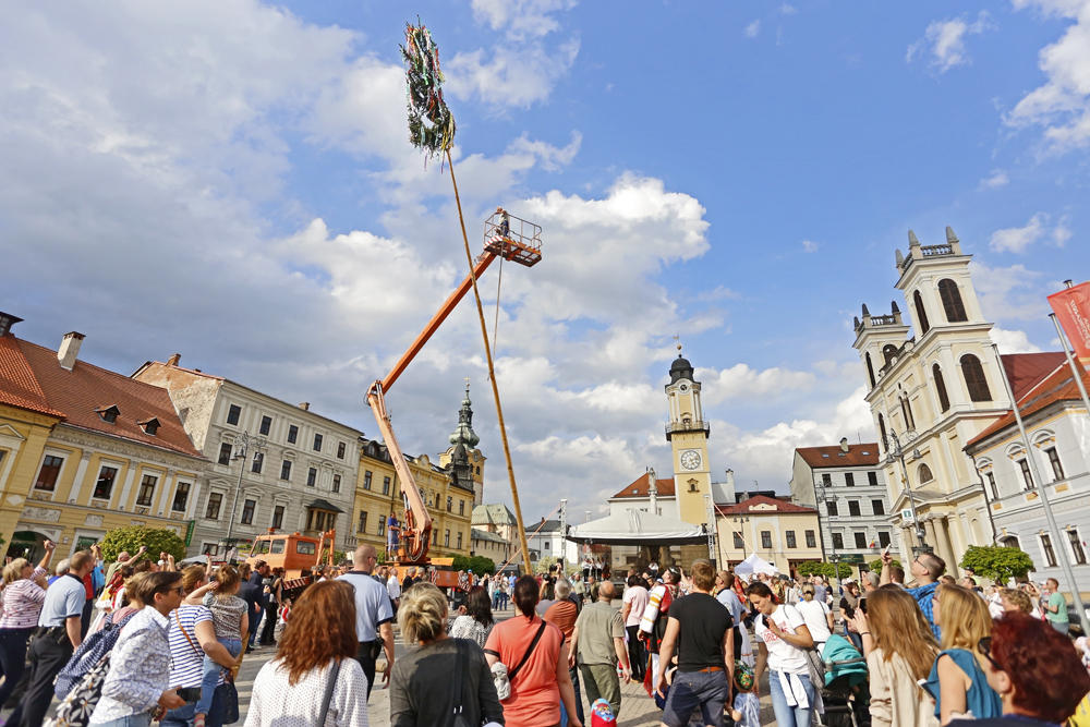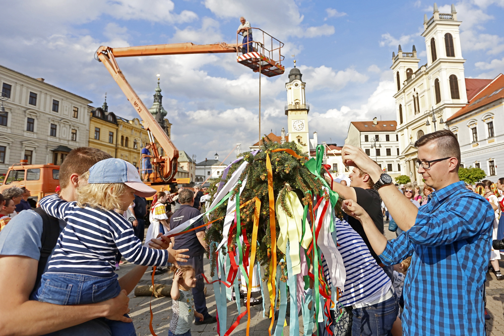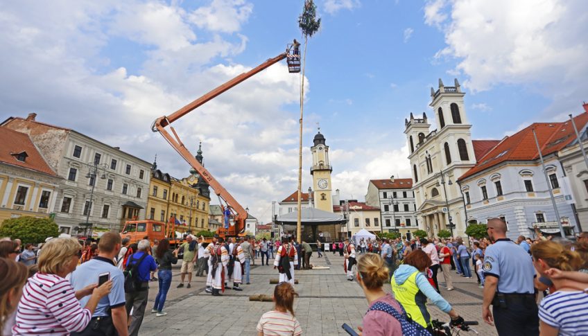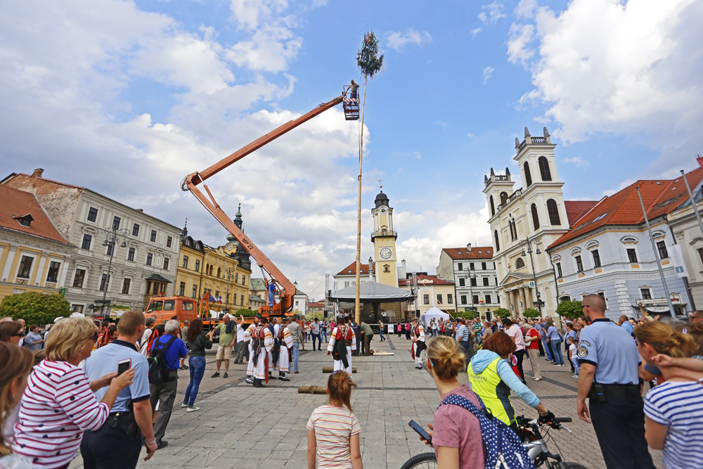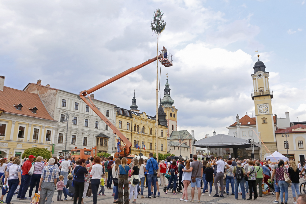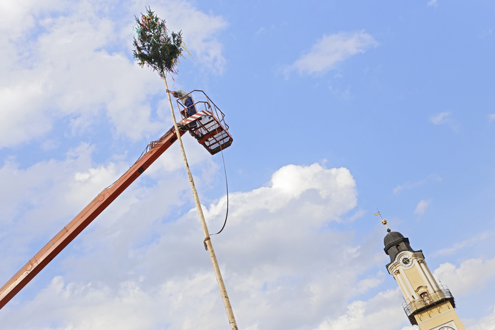 V pondelok podvečer 30. apríla za zvukov ľudovej hudby postavilo mesto Banská Bystrica na Námestí SNP tradičný Prvý máj. Kultúrny program na pódiu pod májom pokračuje aj v utorok na Sviatok práce.