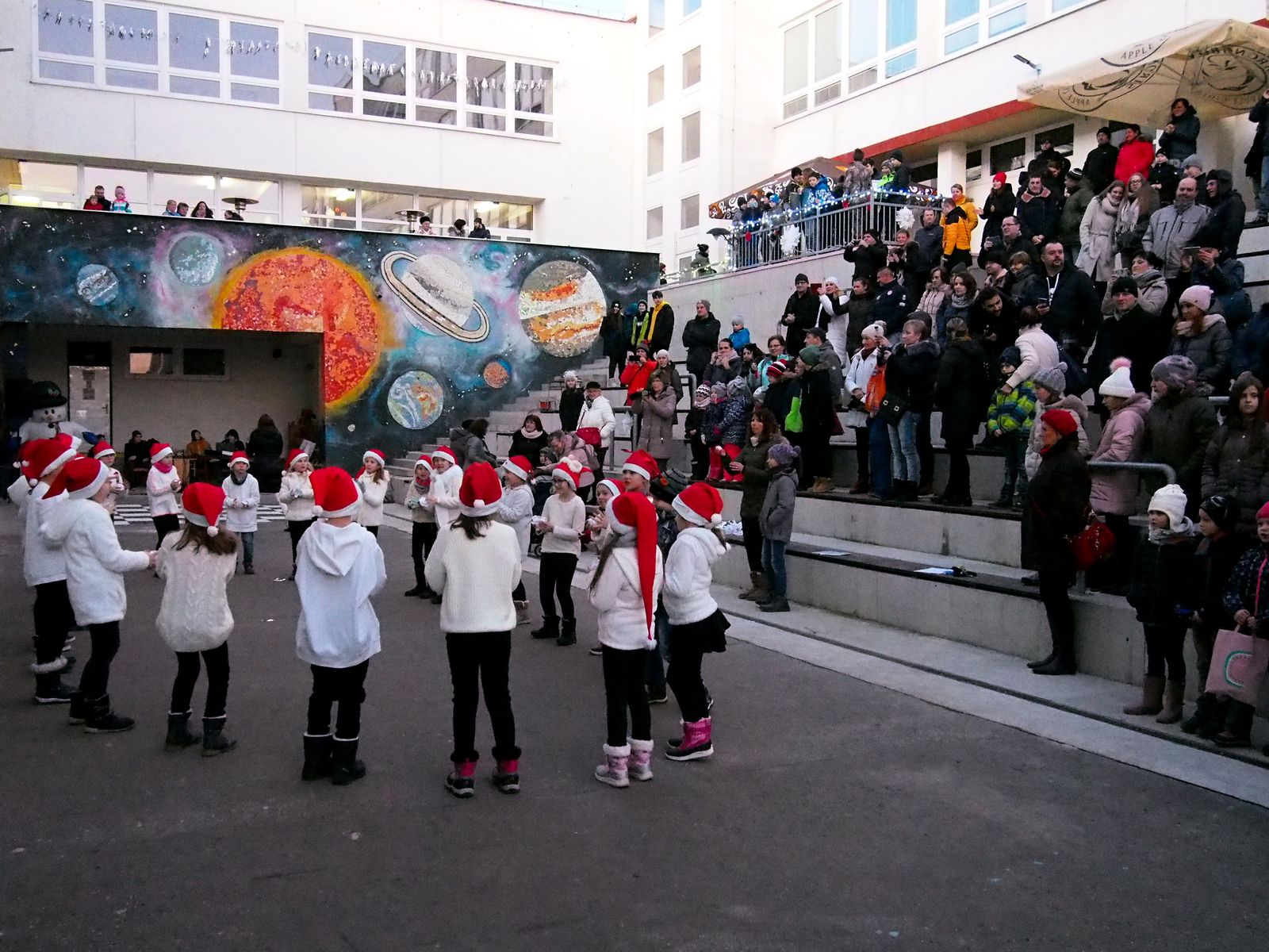 Predstavili sa v ňom „strigy“ Lucie, snehové mažoretky, ale mohli sme vidieť aj tanečné vystúpenie žiakov inšpirované rozprávkou Perinbaba. V priestoroch školy čakali na návštevníkov stánky plné všakovakých výrobkov, darčekov a dobrôt.