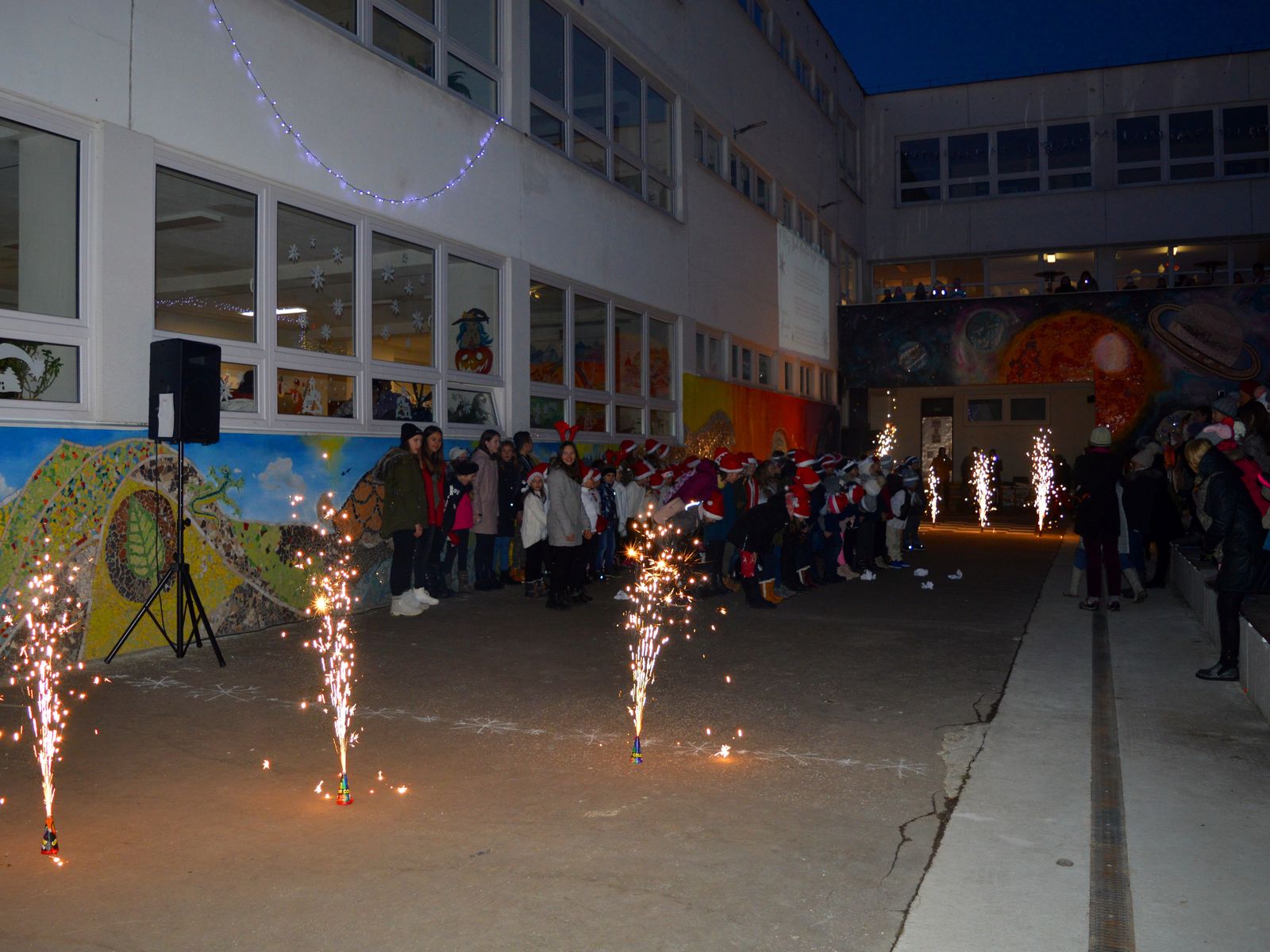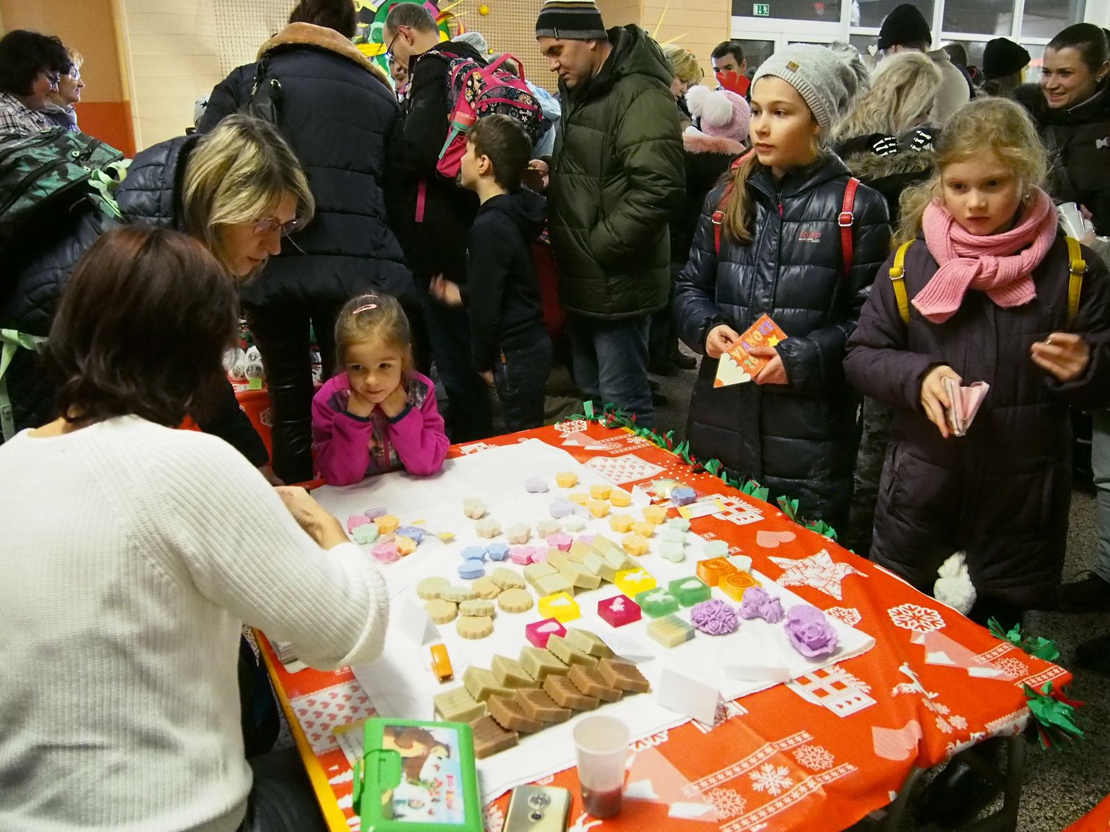 Celým átriom a školou sa niesla vôňa čerstvo upečených oblátok premiešaná s podmanivou arómou ihličia. Pravú sviatočnú atmosféru dotváralo bohaté občerstvenie, ktoré pošteklilo nejedny chuťové poháriky.