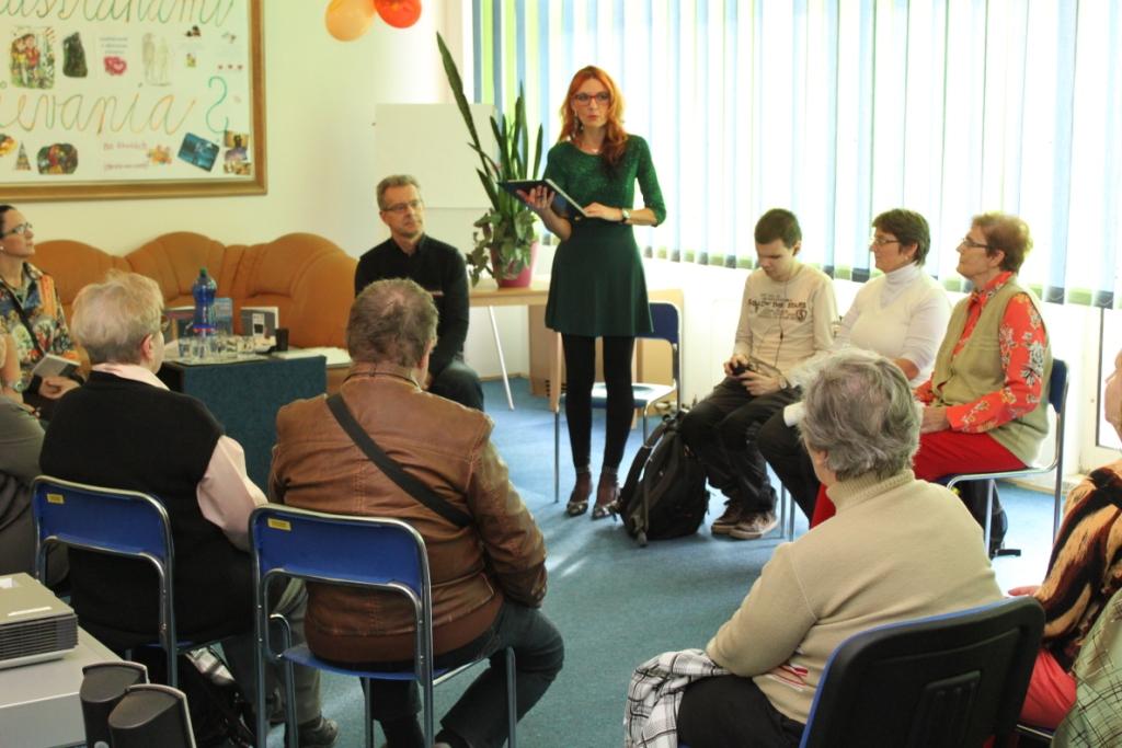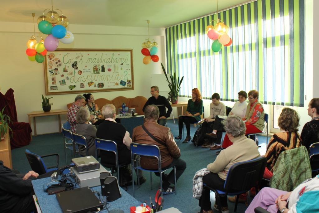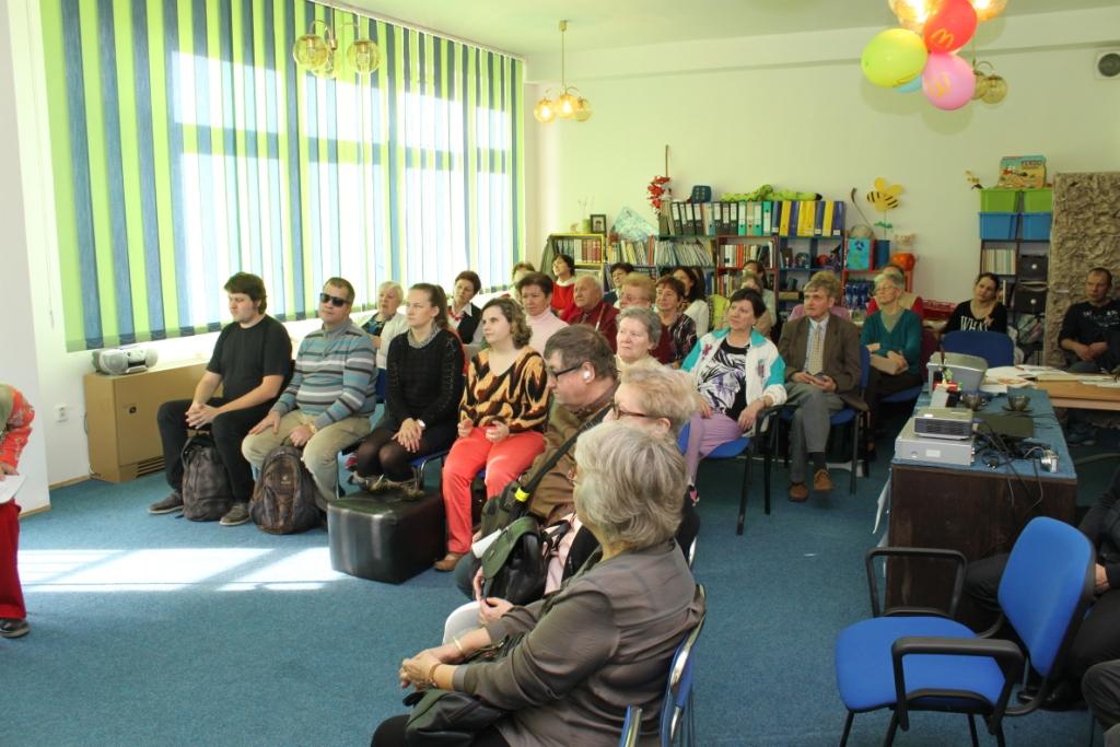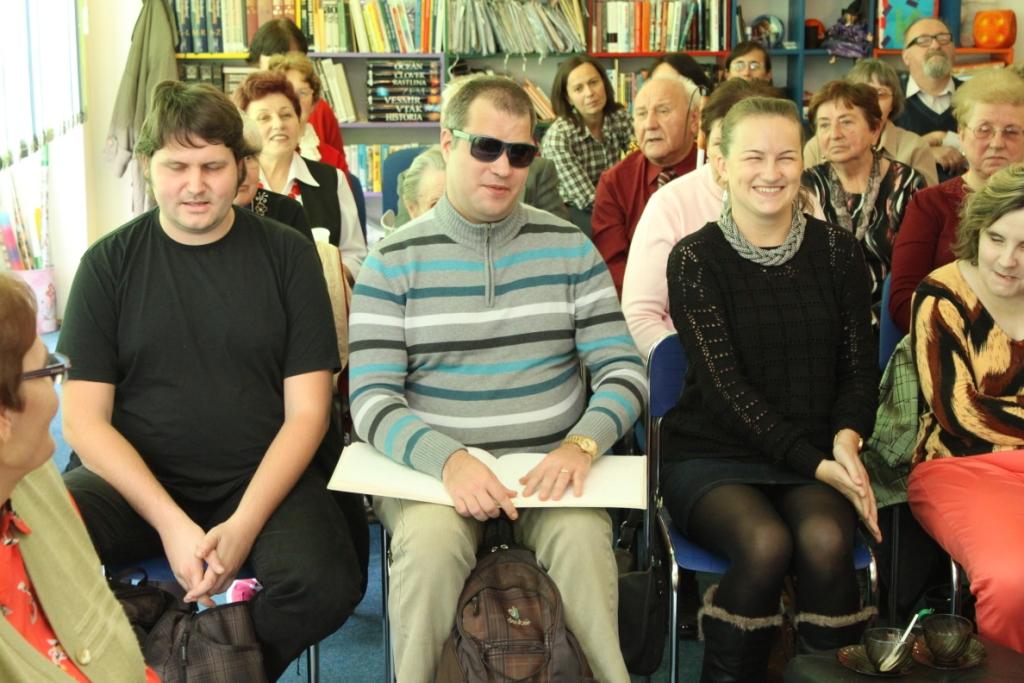 Na stretnutie s poéziou a prózou prišli v hojnom počte aj slabozrakí a nevidiaci čitatelia knižnice, tiež zástupcovia z Krajského strediska Únie nevidiacich a slabozrakých Slovenska.
