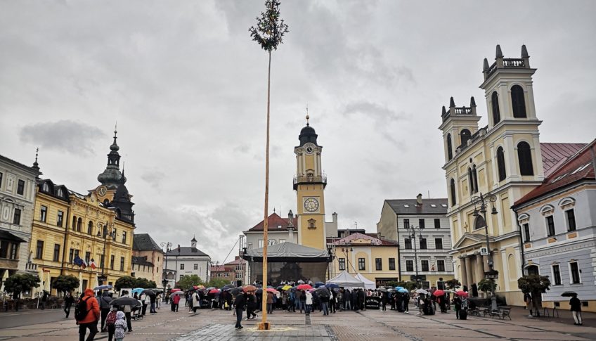FOTO: Tradičný bystrický máj už stojí na Námestí SNP