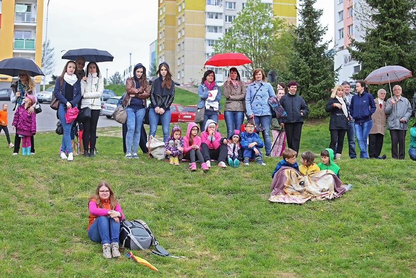 Na 1.mája o 17:00 hod. sa na lúke pri križovatke ulíc Starohorská- Rudohorská zišli na tejto tradičnej akcii obyvatelia sídliska a účinkujúci. Neodradilo ich ani mrholenie.