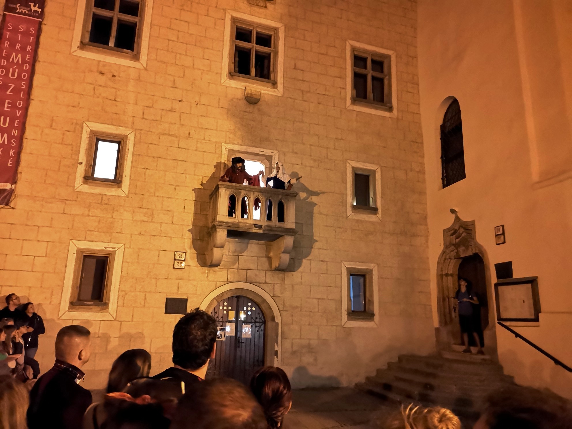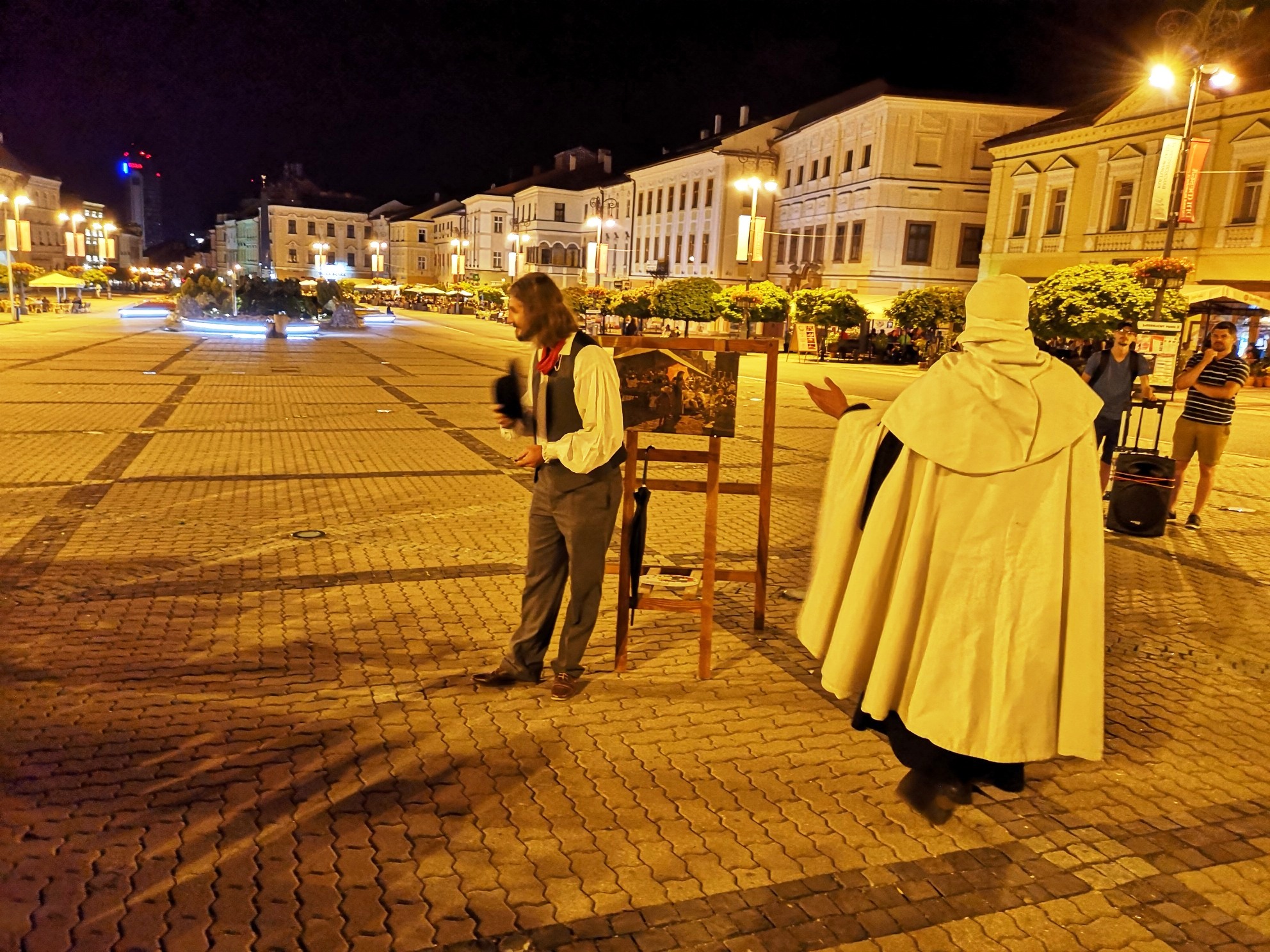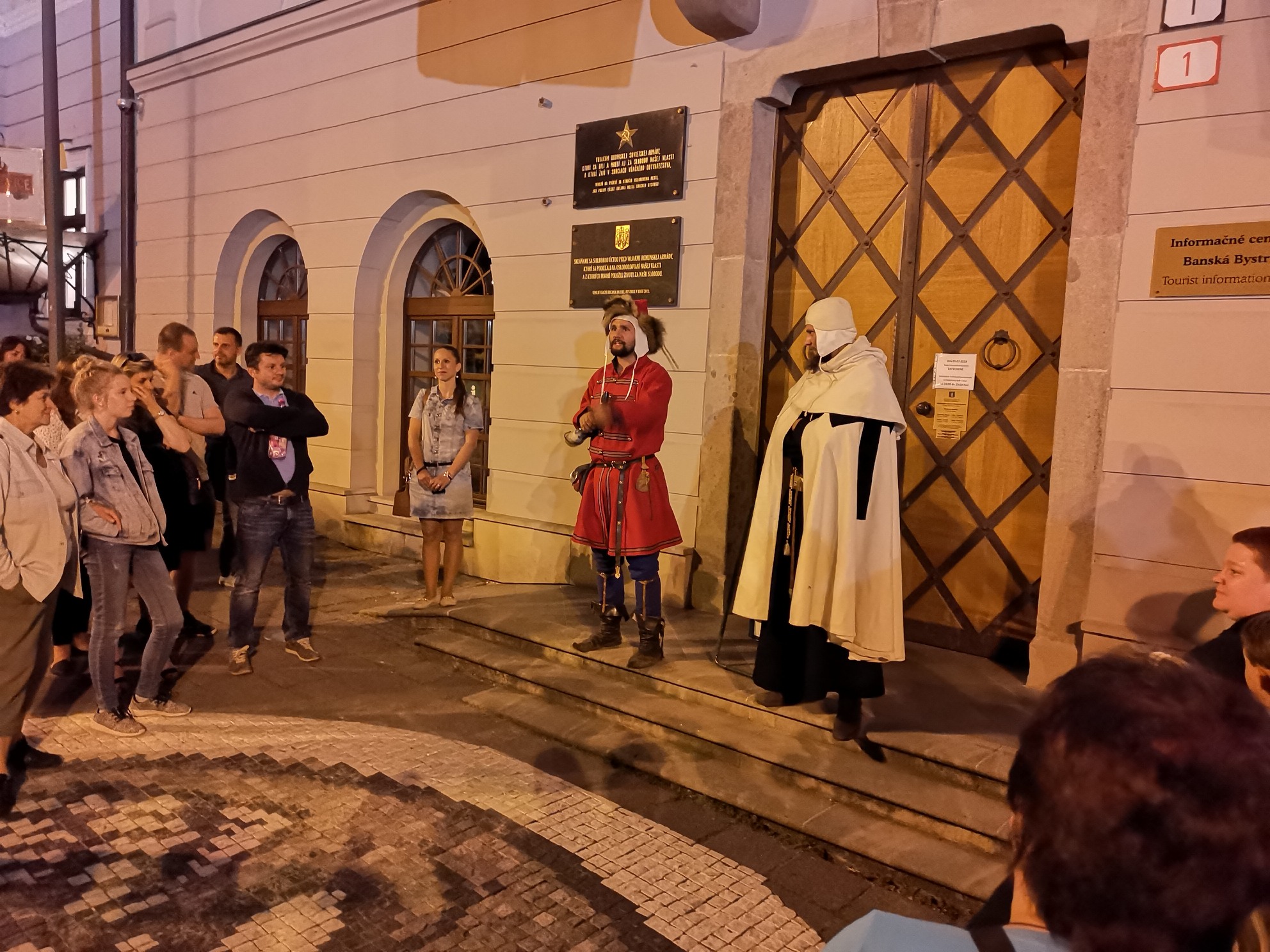 Pred nočnými návštevníkmi, ktorých sa zišli pri Radnici na Námestí SNP vyše dve stovky, ožívali dávne postavy našej histórie od Belu IV. A Gabriela Betlena, Dominika Skuteckého, cez Jána Thurzu a Jakuba Fuggera s ich mediarskou spoločnosťou, biskupa, trhovníkov či žobrákov až k Matejovi Korvínovi, Matejovi Belovi, Chavive Reik a ďalším historickým osobnostiam, až sme sa napokon dostali k obdobiu Slovenského národného povstania.