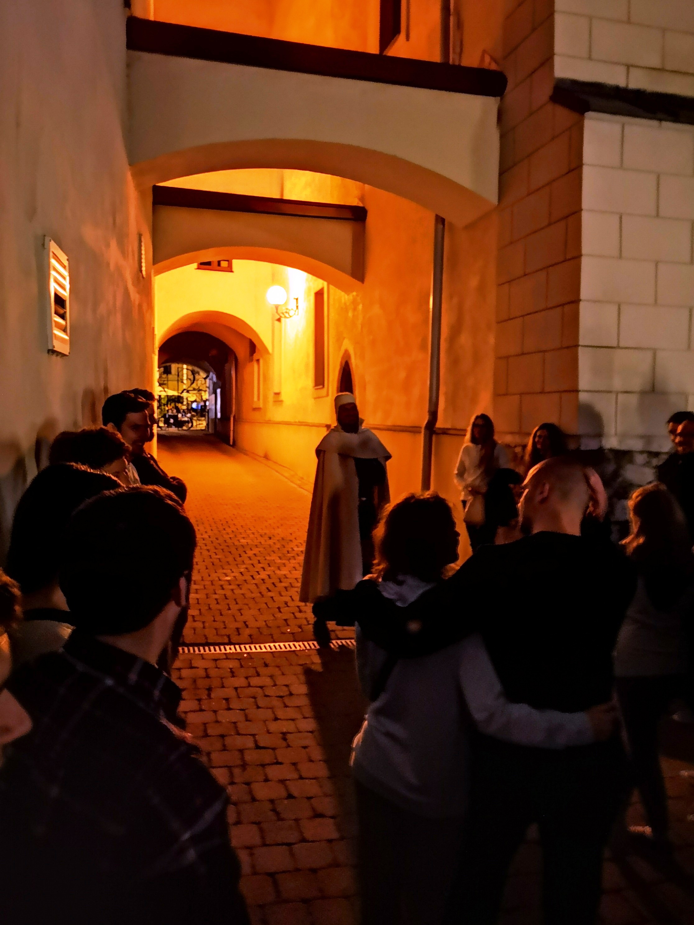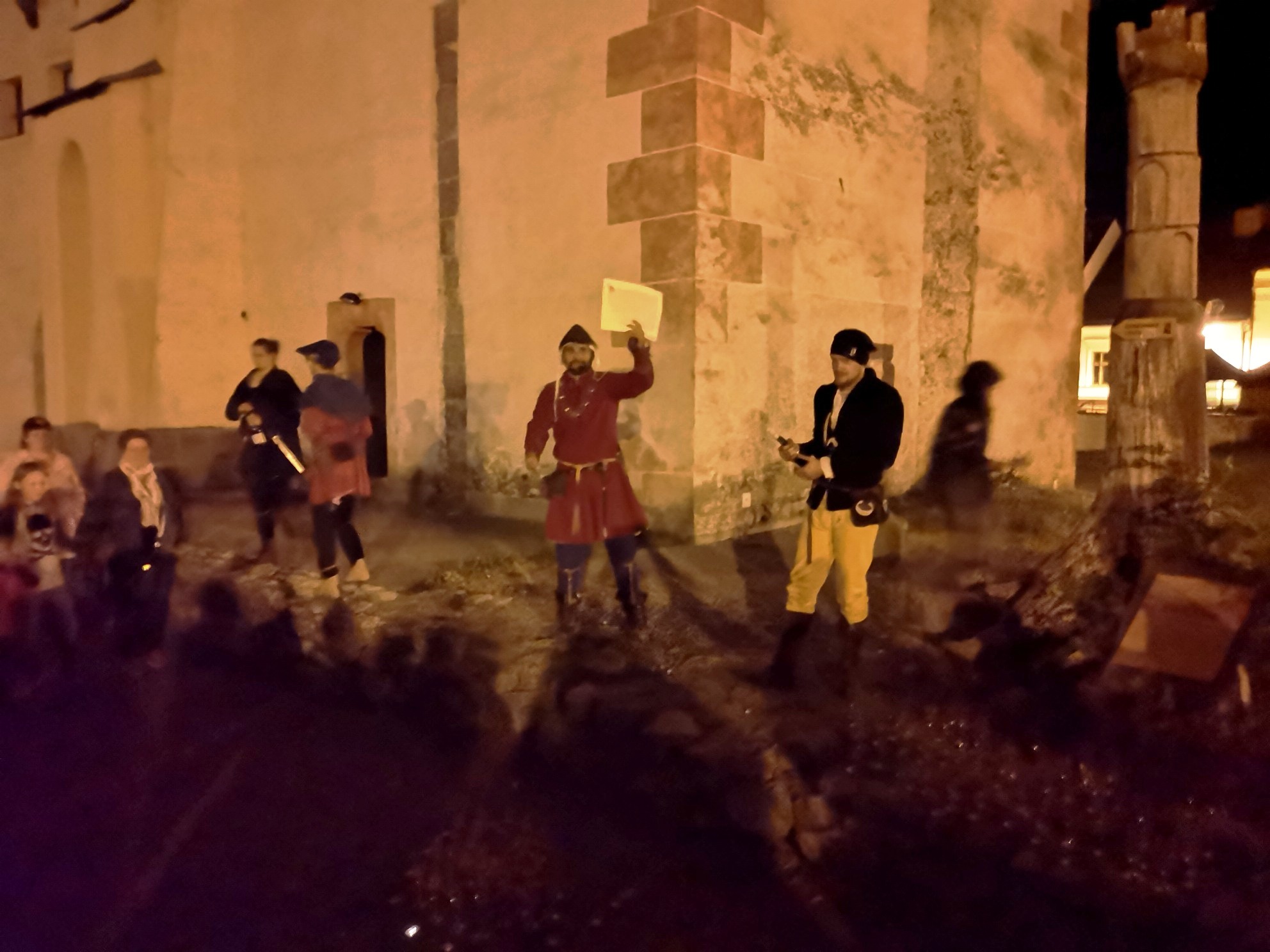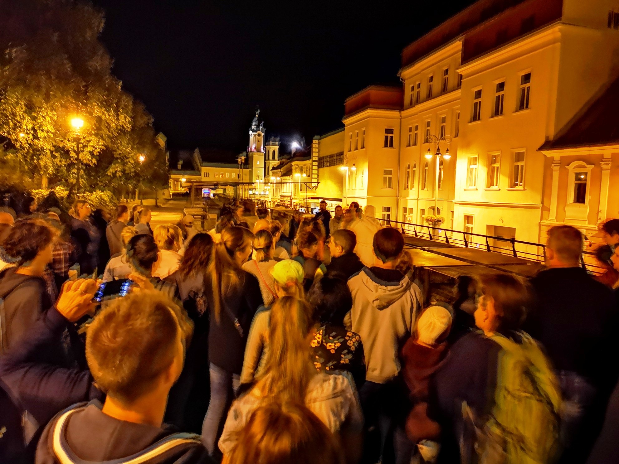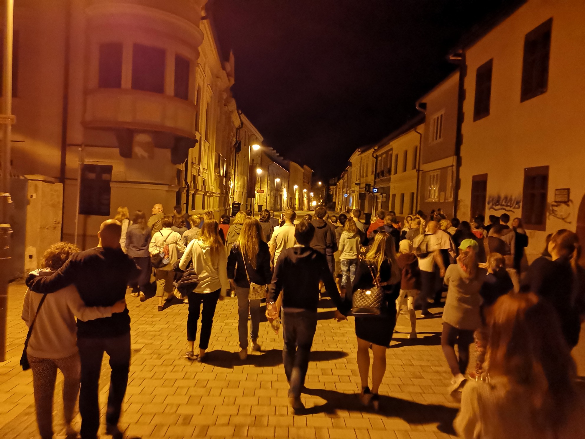 Zraz bol pred Radnicou. Pán času a ďalšie historické postavy potom previedli účastníkov nočnej prehliadky (vyše sto v jednej skupine) významnými udalosťami, ktoré v dávnej histórii ovplyvnili vývoj nášho mesta. Bolo v tom trochu strachu, ktorý však striedal aj úsmev, historické poznatky sa striedali s vtipným prevedením výjavov jednotlivými postavami v historických kostýmoch. Na jednotlivých zastávkach nechýbal výklad danej etapy našej histórie.