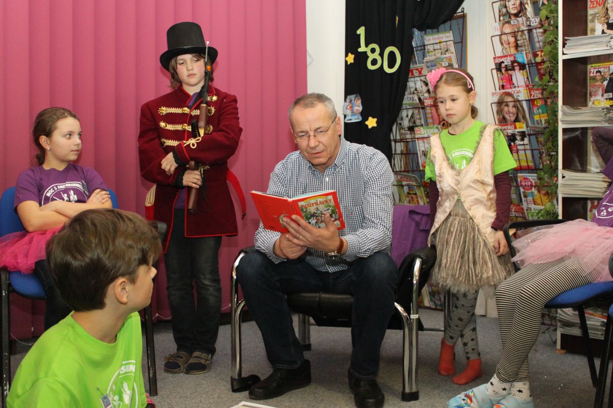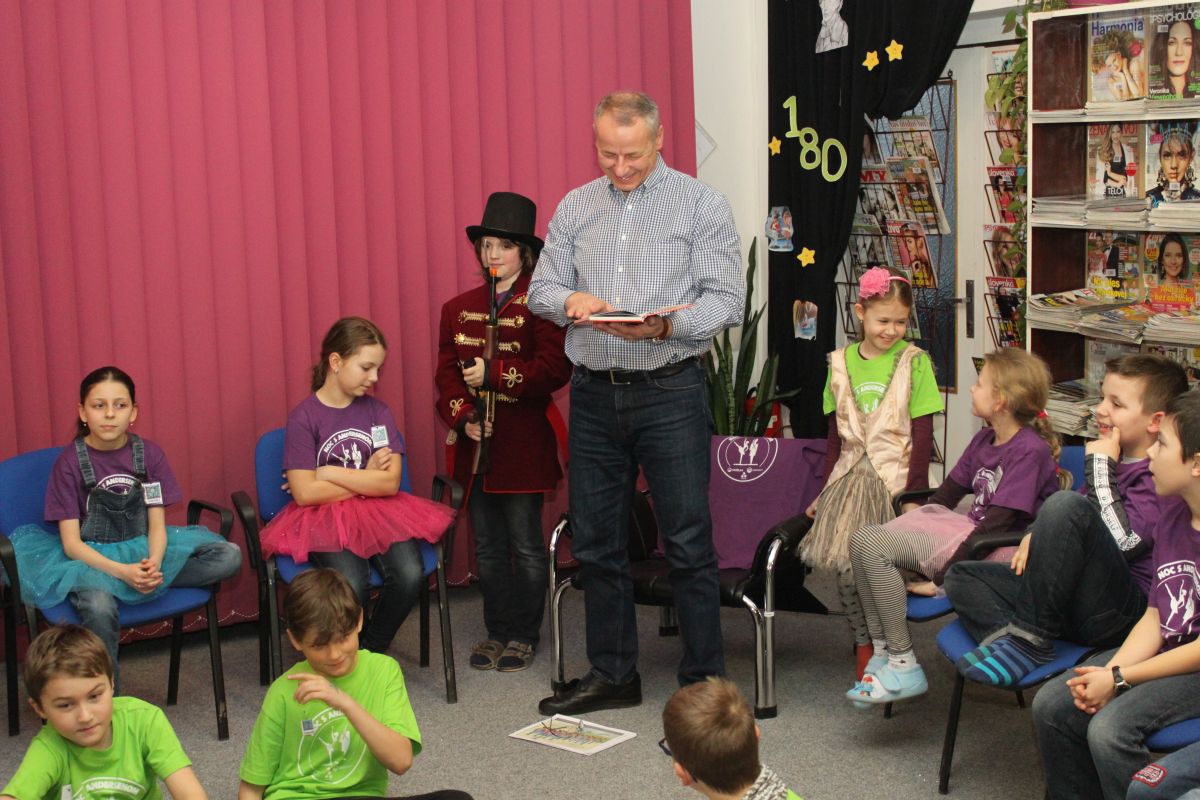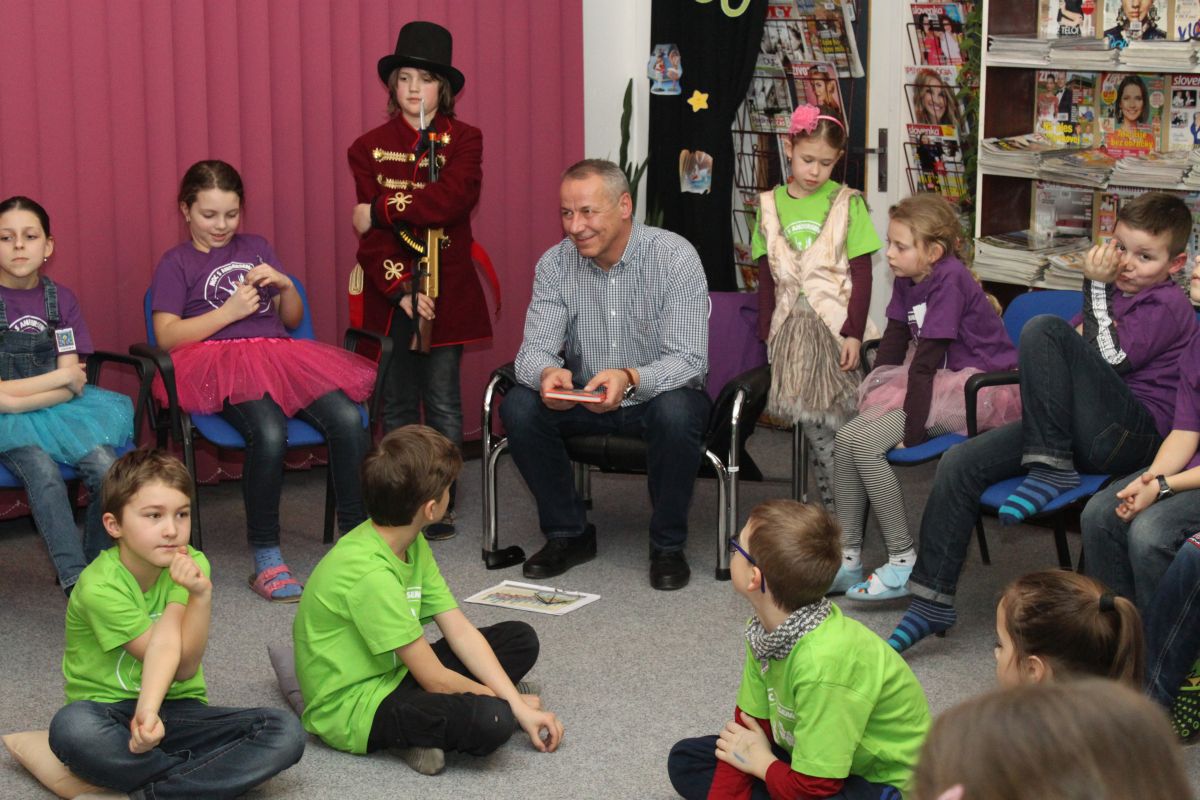 S deťmi sa podelil o svoje zážitky z detstva, porozprával aj o histórii mesta Banská Bystrica a iné zaujímavosti. Deti zavítali aj do kancelárie predsedu BBSK. Po skončení stretnutia na Námestí Š. Moysesa vypustili balóny. Po návrate do knižnice a výbornom občerstvení, ktoré sme zabezpečili vďaka sponzorom sa deti plné elánu pustili do ďalších aktivít, pri ktorých naplno uplatnili svoju fantáziu a tvorivosť.