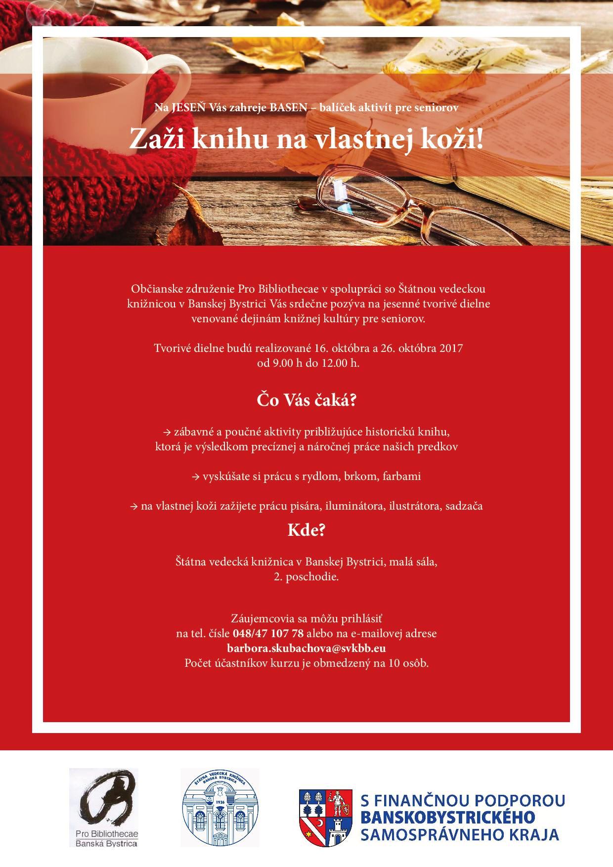 Tvorivé dielne nazvané Zaži knihu na vlastnej koži v Štátnej vedeckej knižnici v Banskej Bystrici sa konajú 16. a 26. októbra 2017 od 9:00 hod.