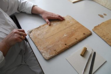 …ale pokojne by sme mohli dať aj  titulok Znovuzrodenie knihy. Ide totiž o pozvánku na  prednášku o reštaurovaní starých tlačí, kníh a dokumentov. Niekedy ani samotní reštaurátori netušia, čo skrýva stará, poškodená väzba,  či kusy pergamenu.