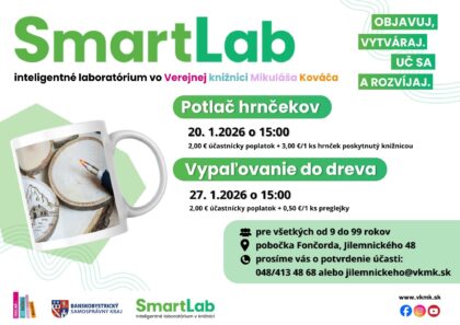 Programy sú navrhnuté tak, aby búrali bariéry medzi generáciami – v SmartLabe sú vítané deti od 9 rokov, mládež aj dospelí seniori túžiaci po nových zručnostiach. Januárové SmartLaby sa konajú 20. 1. (Potlač hrnčekov) a 27. 1. (Vypaľovanie do dreva) od 15.00 v pobočke Fončorda.
