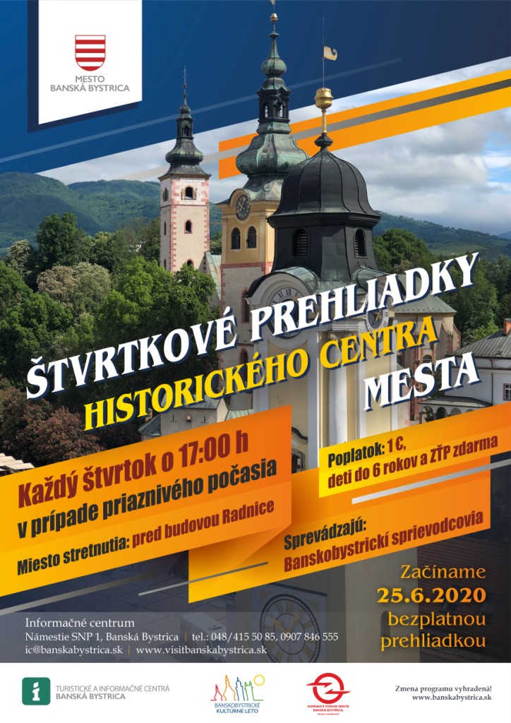 Po viac ako desiatich rokoch obnovujeme tradíciu pravidelných štvrtkových prehliadok historickým centrom mesta, ktoré sa kedysi tešili veľkej popularite. V prípade priaznivého počasia pozývame všetkých Banskobystričanov každý štvrtok na prechádzku okolitými ulicami. Vďaka profesionálnemu výkladu sprievodcov sa budú cítiť, akoby boli návštevníkmi Banskej Bystrice.
