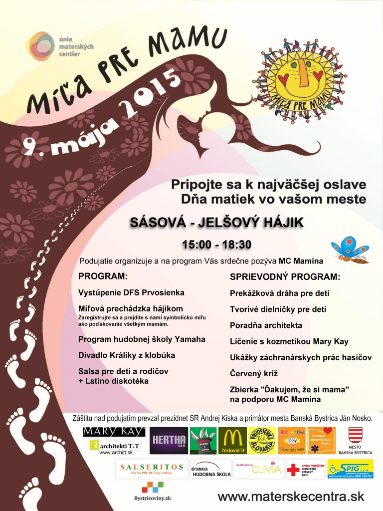 Kutlúrno – zábavné popoludnie „Míľa pre mamu“ je určené pre celé rodiny. Organizujú ho materské a rodinné centrá vo viacerých mestách Slovenska, pričom Banská Bystrica nie je výnimkou. Nad sásovskou akciou prevzali záštitu prezident SR Andrej Kiska a primátor mesta Ján Nosko.
