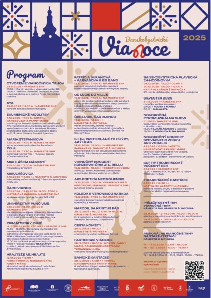 Príďte si vychutnať prvý punč, vôňu dobrôt a sviatočné melódie na najkrajšie námestie na Slovensku. Všetci ste srdečne pozvaní. Viac informácií nájdete na našom webe: https://www.banskabystrica.sk/vianoce2025.
