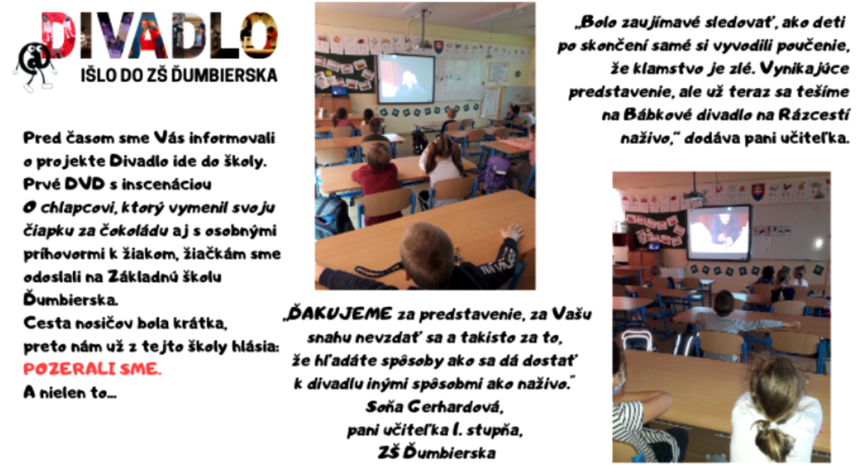 „Niektoré z pripravovaných DVD si už našli svoje miesta. ZŠ Ďumbierska, ako prvá, už svoje divadlo v škole má. Záujem je veľký, a to nás veľmi teší,“