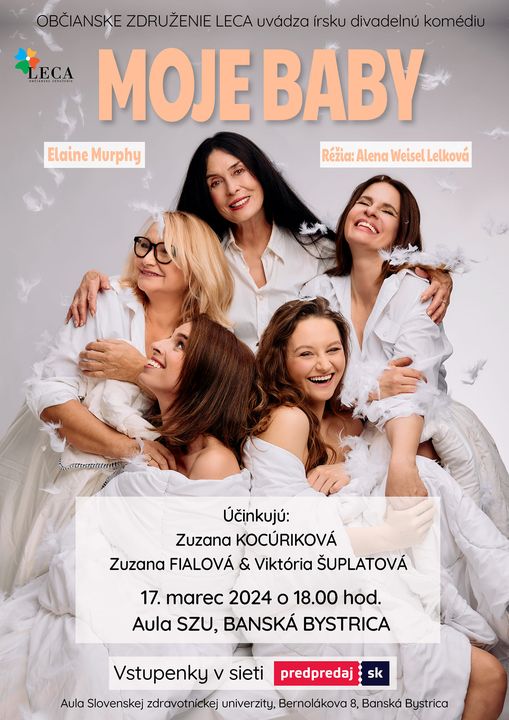 V meste pod Urpínom privítame už túto nedeľu skvelé slovenské herečky v divadelnej komédii Moje baby. Predstavenie sa uskutoční 17. marca 2024 o 18:00 hod. v Aule SZU na Bernolákovej 8.