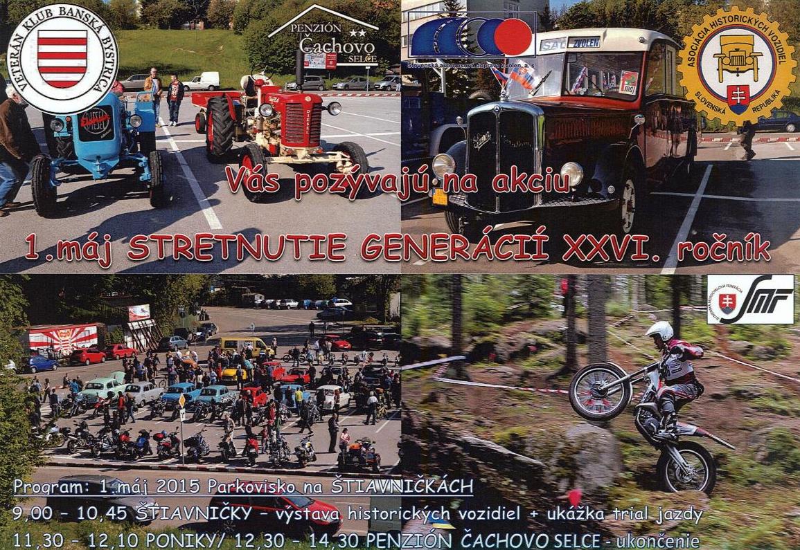 Veterán klub Banská Bystrica usporiada 1. mája na Štiavničkách už XXVI.ročník akcie „Stretnutie Generácií“, ktorou sa otvára nová sezónu veteránov. Zídu sa tu nádherne upravené historické stroje od motocyklov, cez osobné autá, traktory, autobusy až po nákladné autá. Množstvo malých i veľkých návštevníkov si bude môcť opäť popásť svoj zrak na unikátnych veteránoch, ktoré ich majitelia starostlivo zachovávajú v originálnom prevedení.