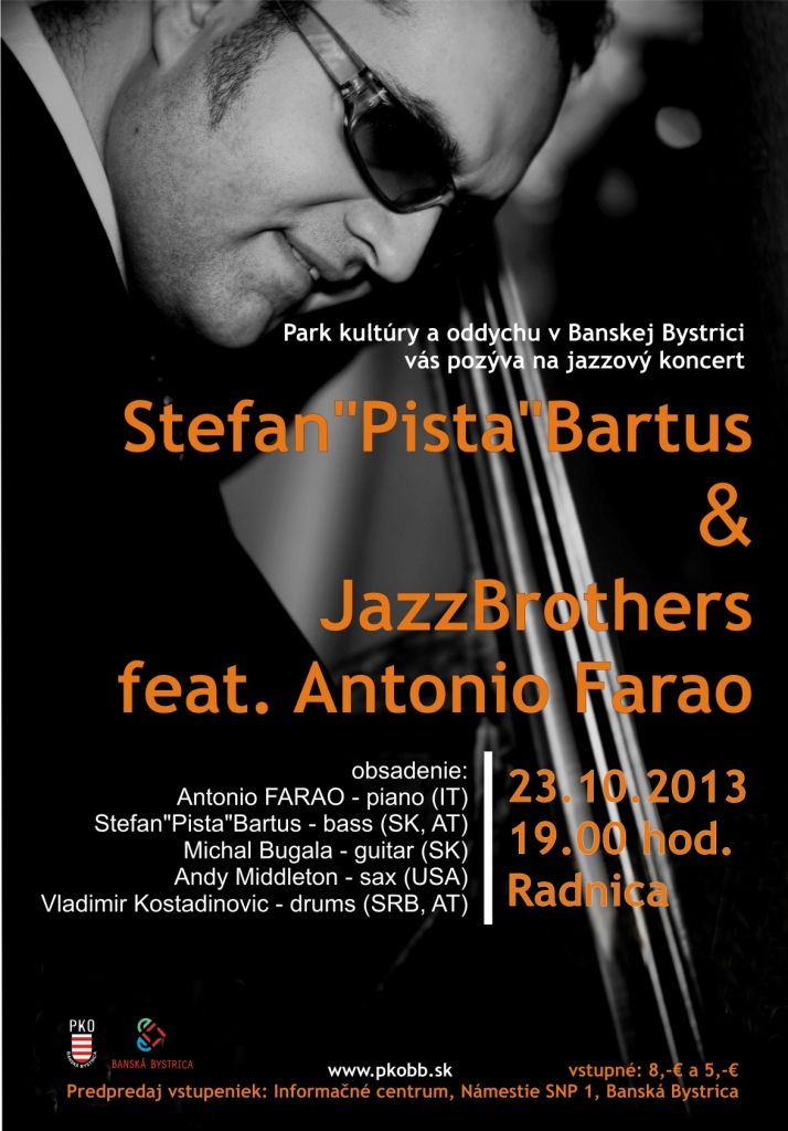 V čase od 22.októbra do 27. októbra budú S.P.BARTUS & JazzBrothers feat. Antonio Farao účinkovať v mestách: