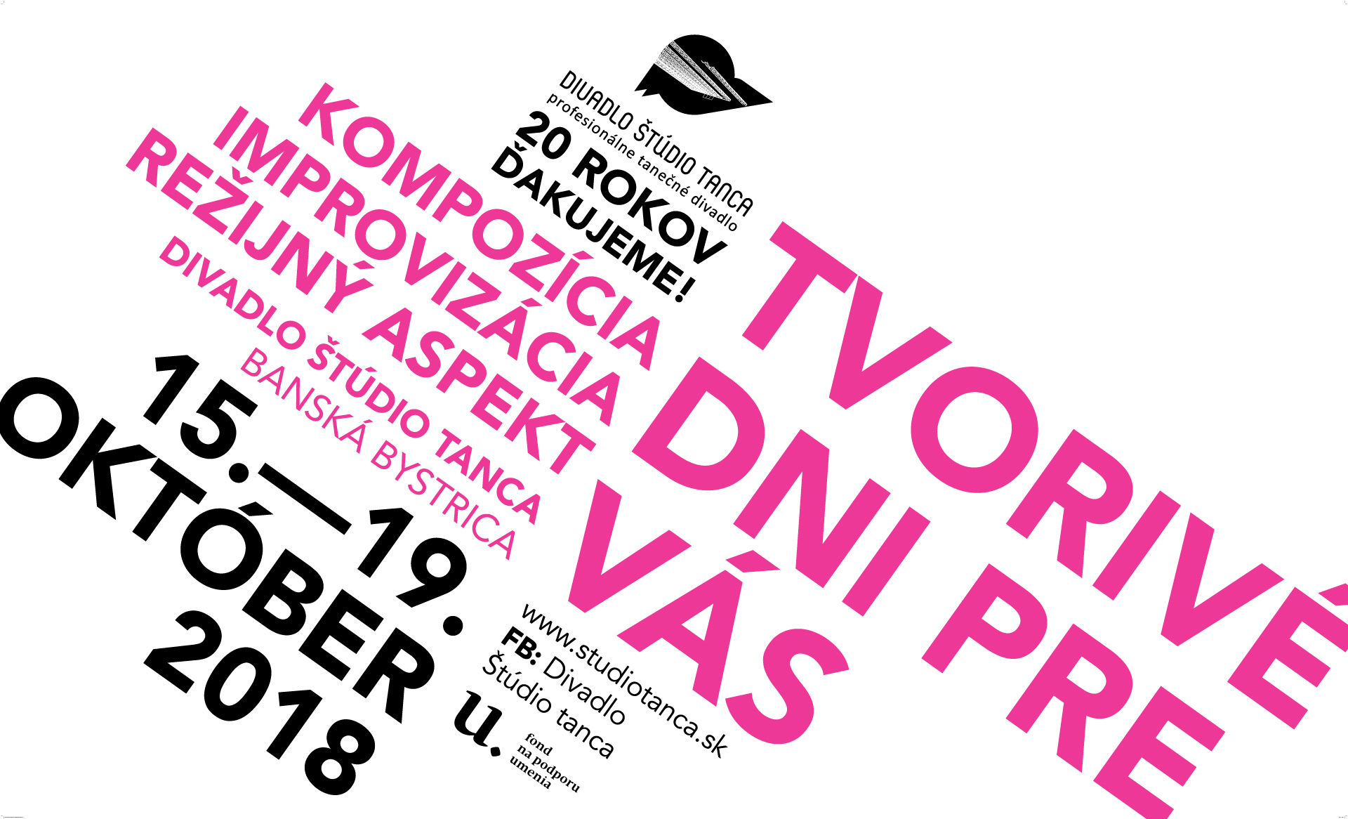 Projekt „Tvorivé dni pre Vás“ je dlhodobou aktivitou Divadla Štúdio tanca zameranou na študentov tanečných odborov slovenských konzervatórií. Cieľom je zdôrazniť potrebu komplexnosti a celistvosti povolania tanečného interpreta a jeho aktívnej participácie na vzniku tanečného diela. Tento ročník sa koná v dňoch 15. – 19. októbra 2018.